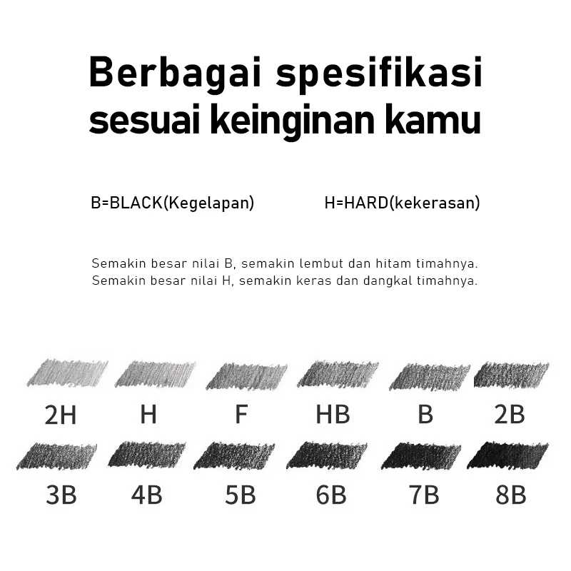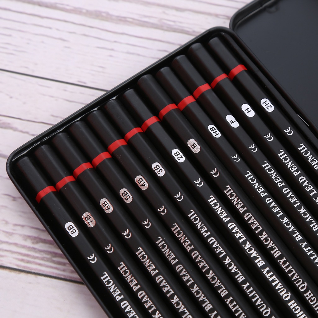12 pcs/kotak Pensil gambar sketsa set lengkap 2H H F B HB 2B 3B 4B 5B 6B 7B 8B Pencils Set Dng Kotak Logam