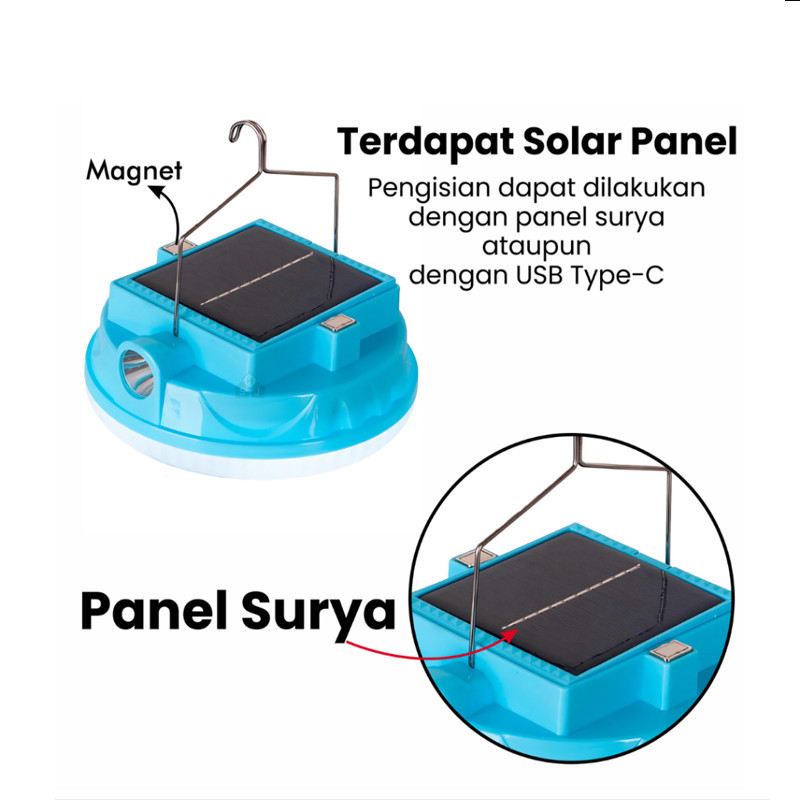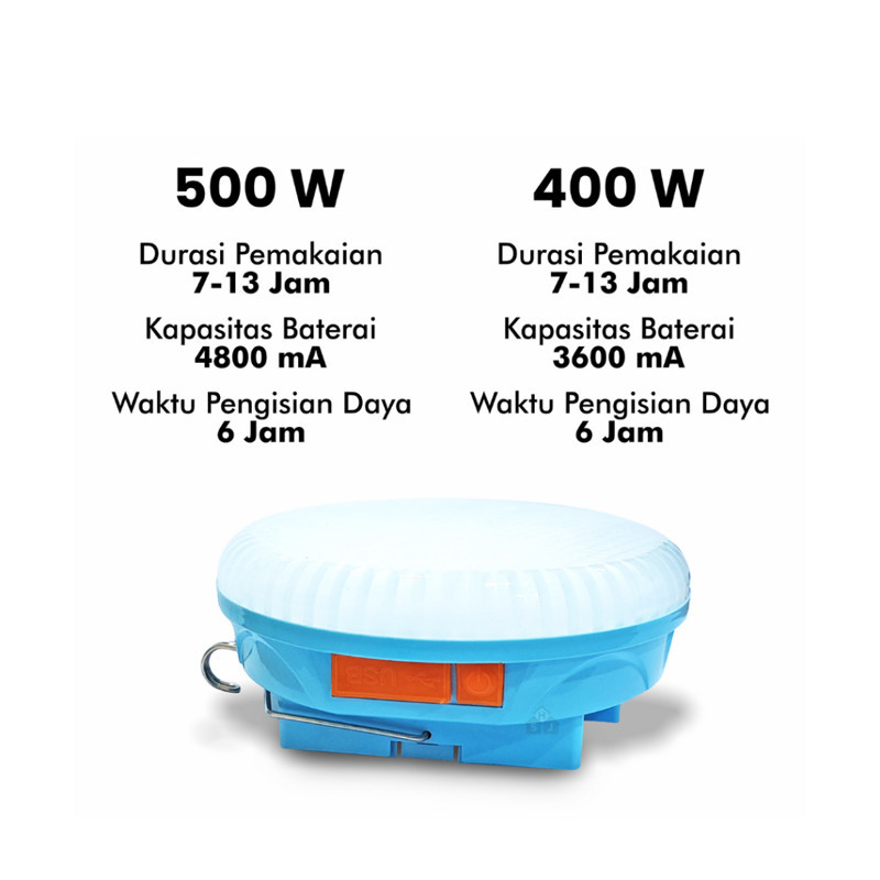 (COD) Lampu LED Emergency UFO + Senter Solar Panel 300w 400w 500w Lampu Darurat Super Terang