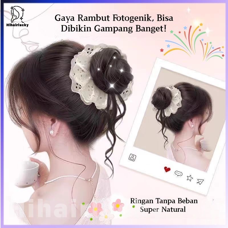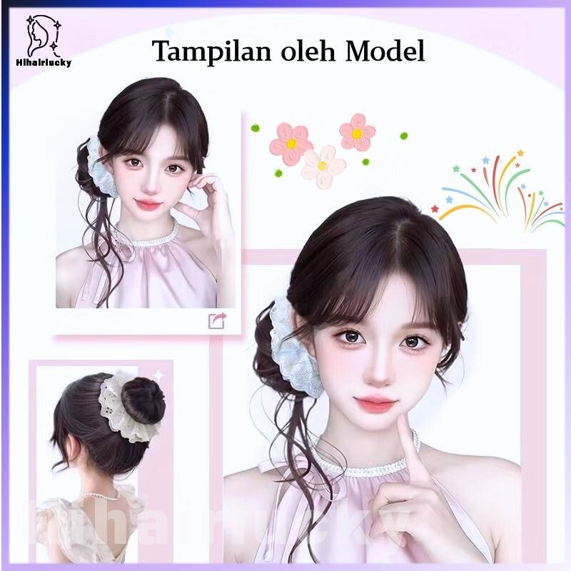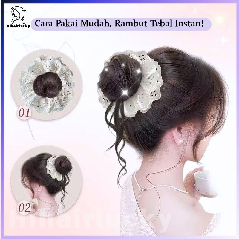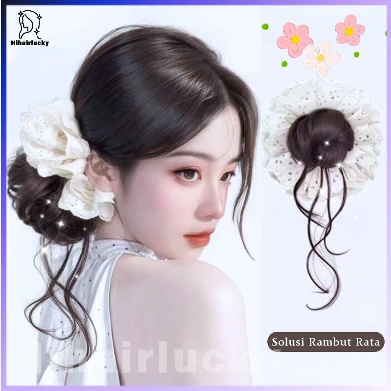 Hair Ties Rambut Palsu Ponytail - Lace Royal Look + Untiran Naga, Korean Style Natural Volume/Wig dikepang Klip kuncir kuda HIL-0552