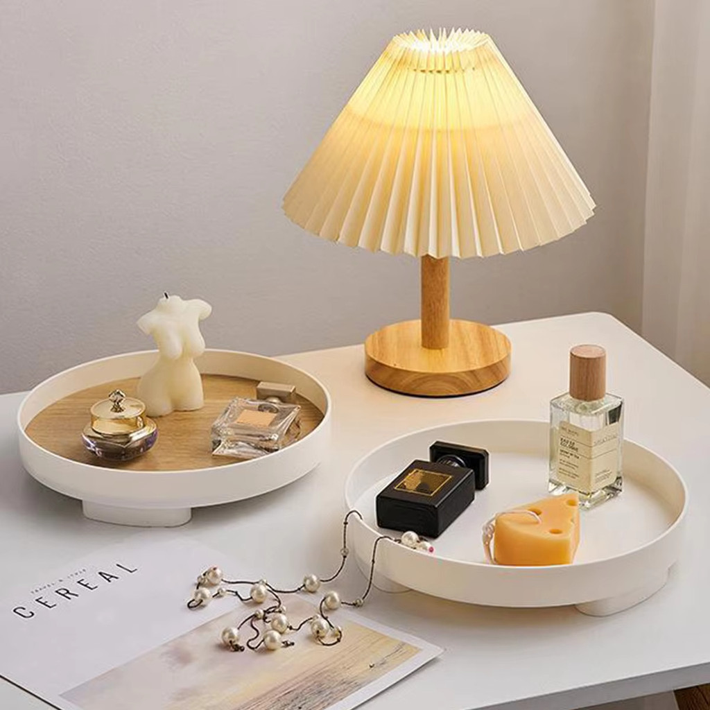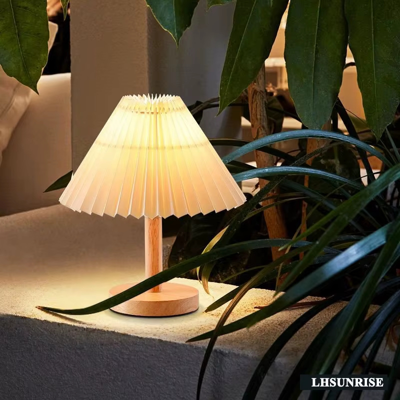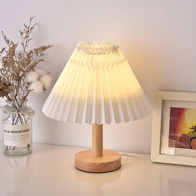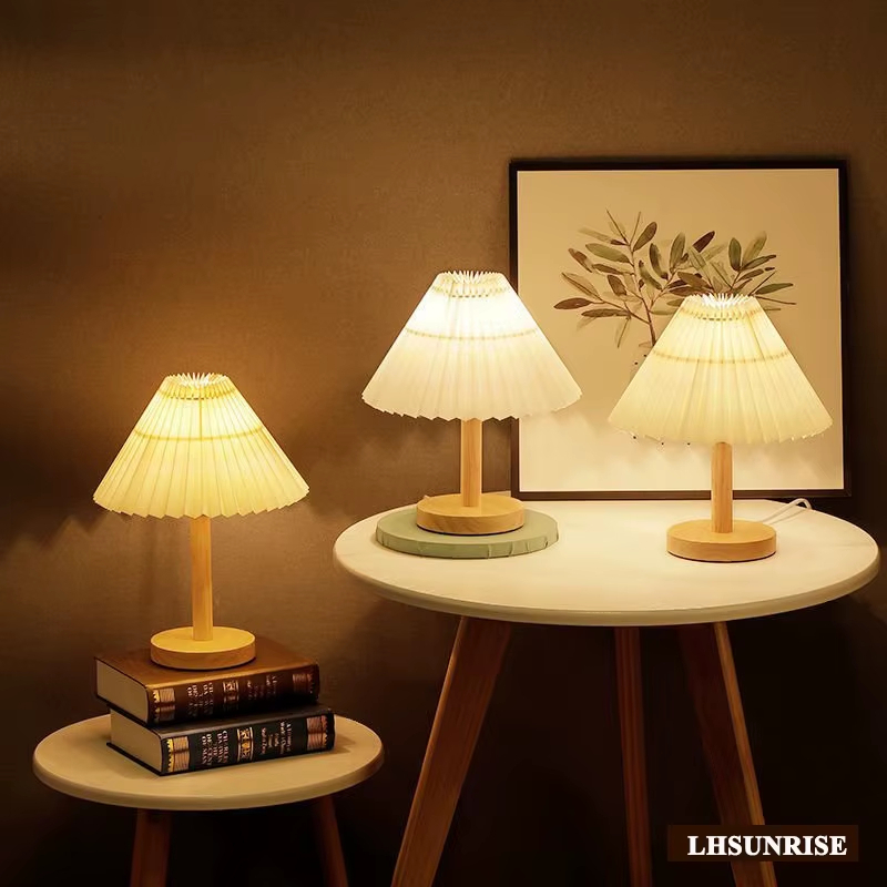 Lampu Meja Aesthetic Minimalis Korean Retro Pleated Vintage Lampu Tidur Aesthetic Meja Lampu Decorative Table Lamp