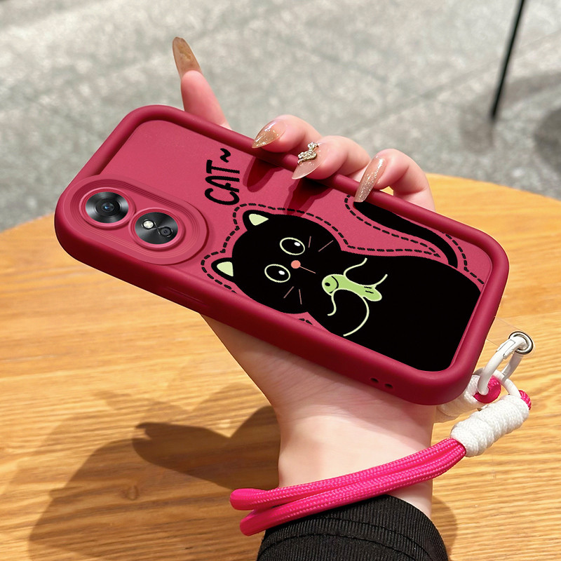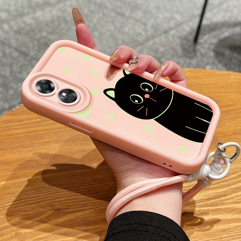 Casing Hp untuk OPPO A17 A17K Case Casing HP Softcase Ponsel Soft Shell dengan Tali Silikon Kasing Kucing hitam yang jujur Cesing Kesing