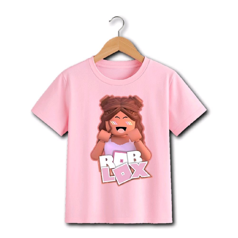 JINYU CO - Kaos Anak Roblox Cewek Cowok Bahan Katun 30s Pink Sablon DTF