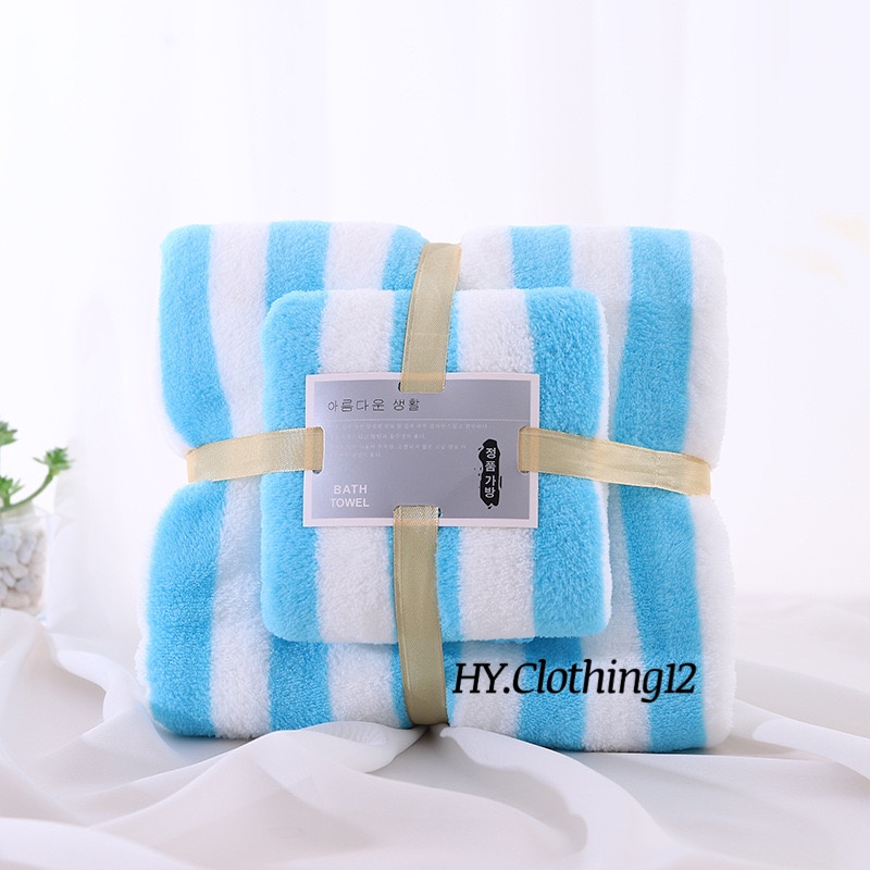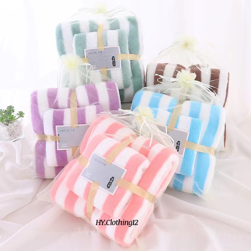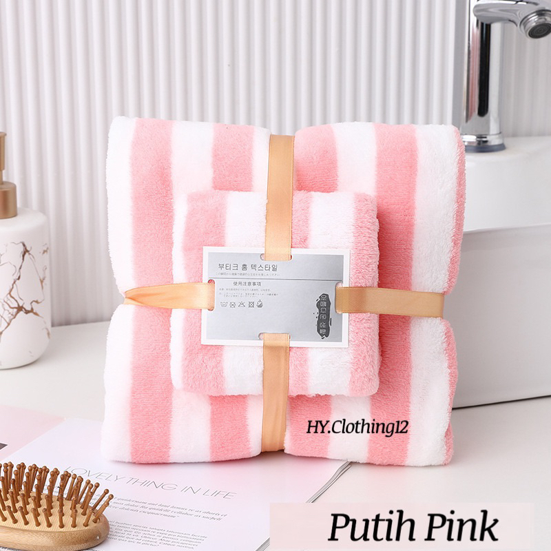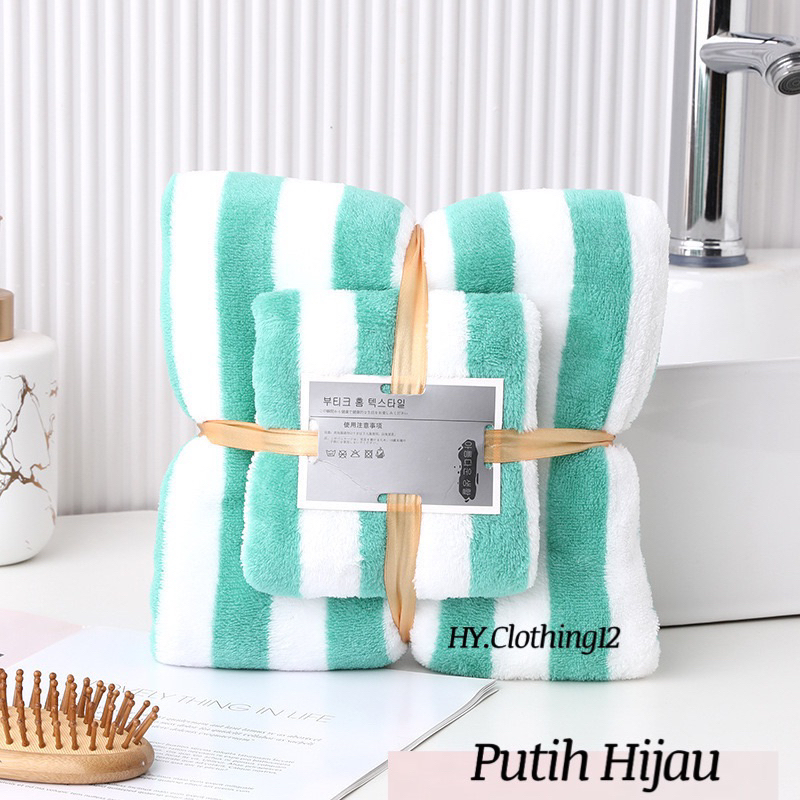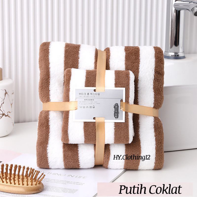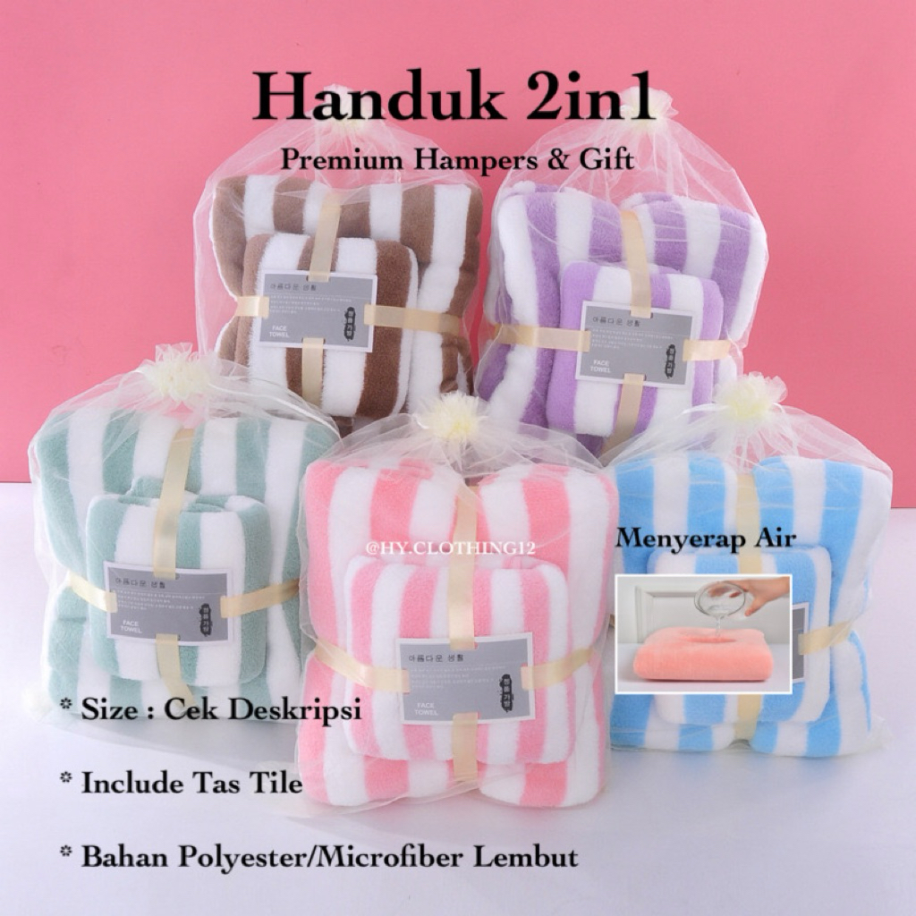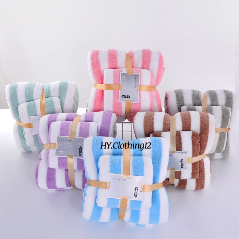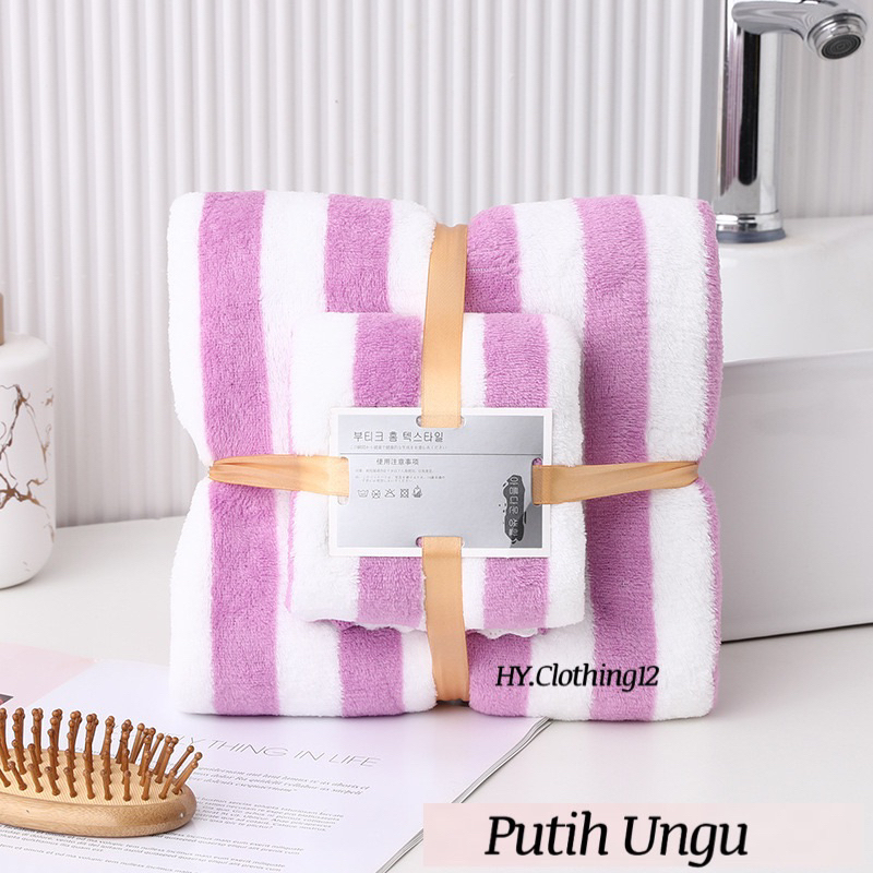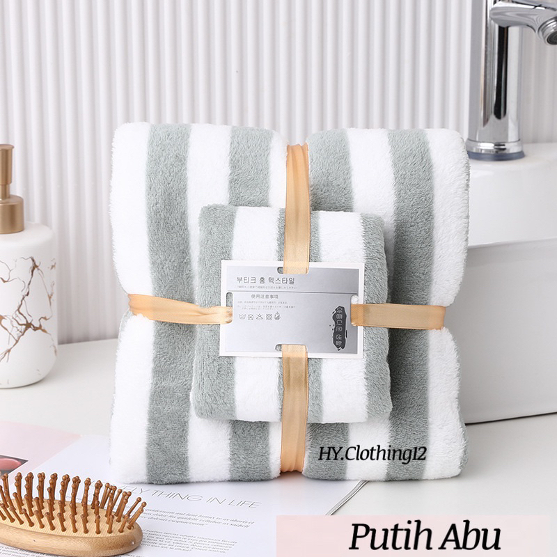[HY.Clothing12] Handuk Mandi Set 2in1 Handuk Mandi & Wajah Motif Garis/ Handuk Microfiber Handuk Mandi Dewasa
