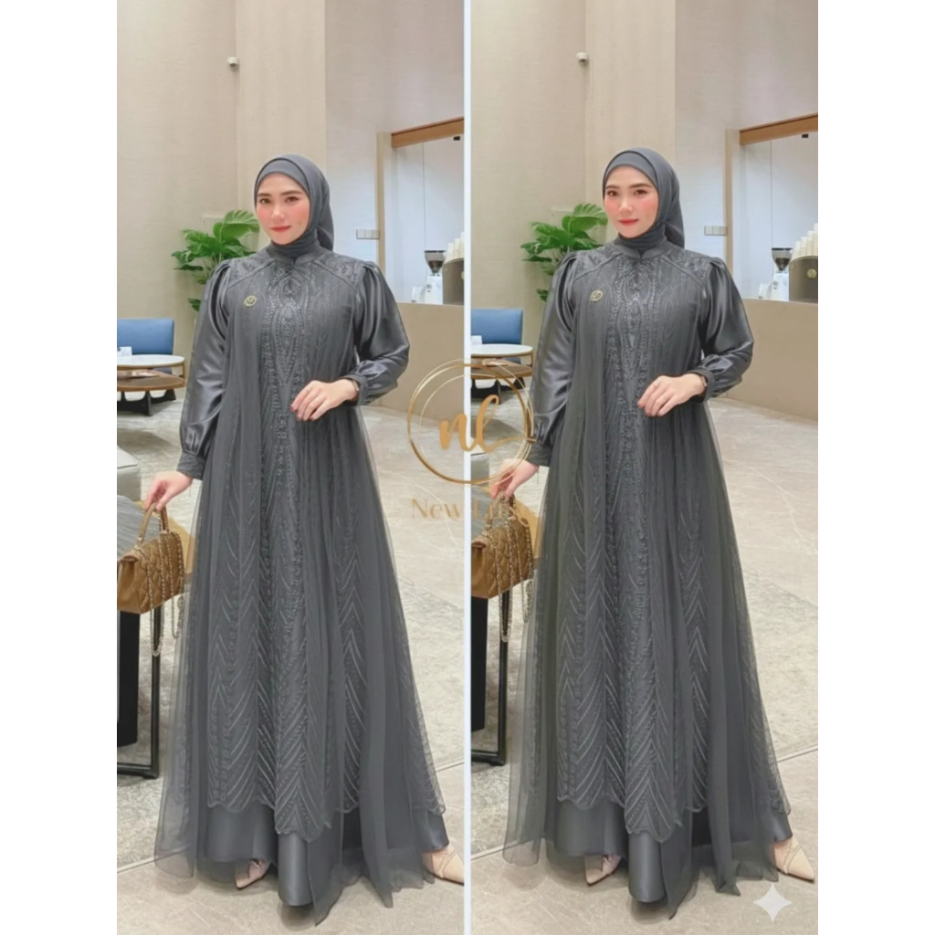 Gamis Brokat Tile Mewah Leya Dress Gamis 2026 Model Terbaru Lebaran Dress Kondangan Simple Elegan