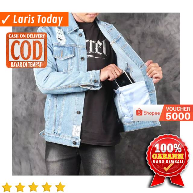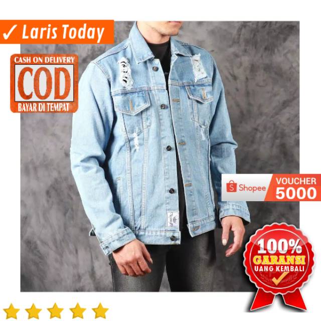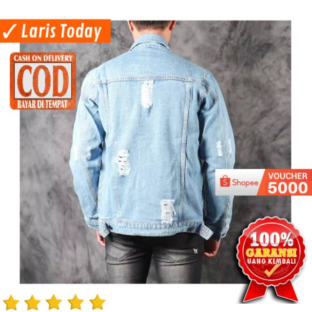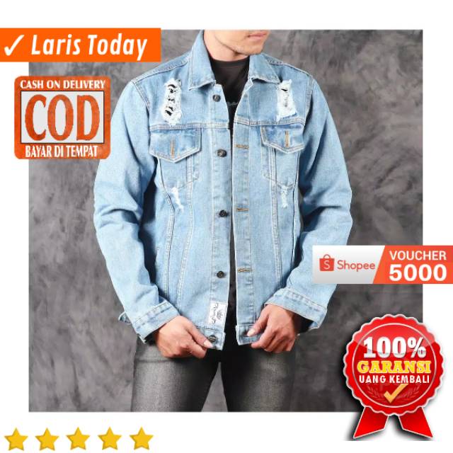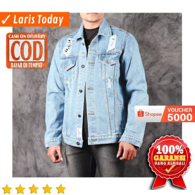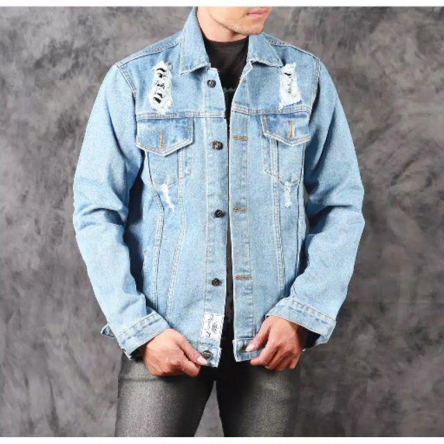 JAKET JEANS PRIA DENIM LEVIS SOBEK ROBEK RIPPED JACKET COWOK DISTRO BANDUNG