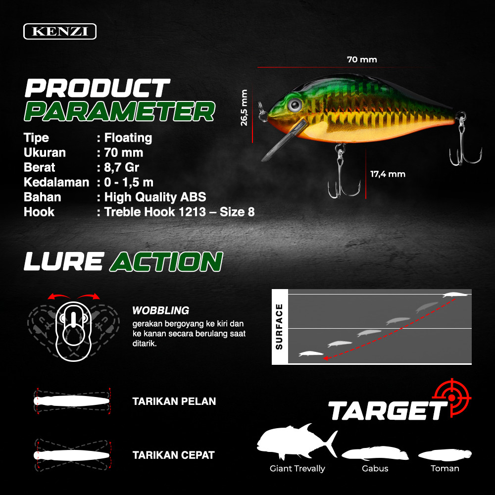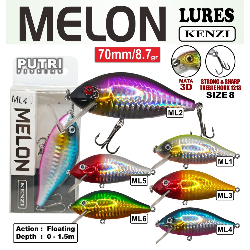 LURE KENZI MELON 70mm 8.7gr - MINNOW FLOATING Lures Reflektif Treble Hook Tajam Kuat Crankbaitt Umpan Pancing