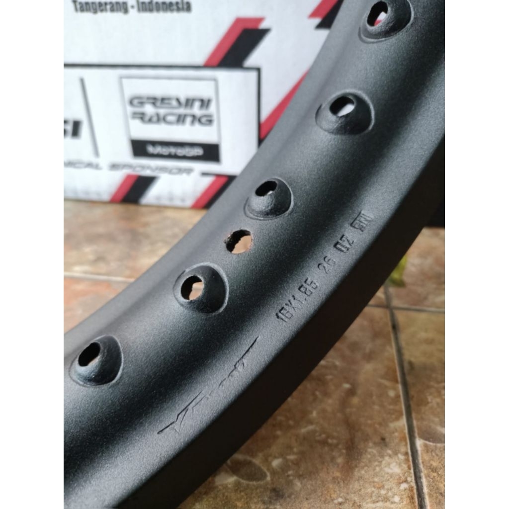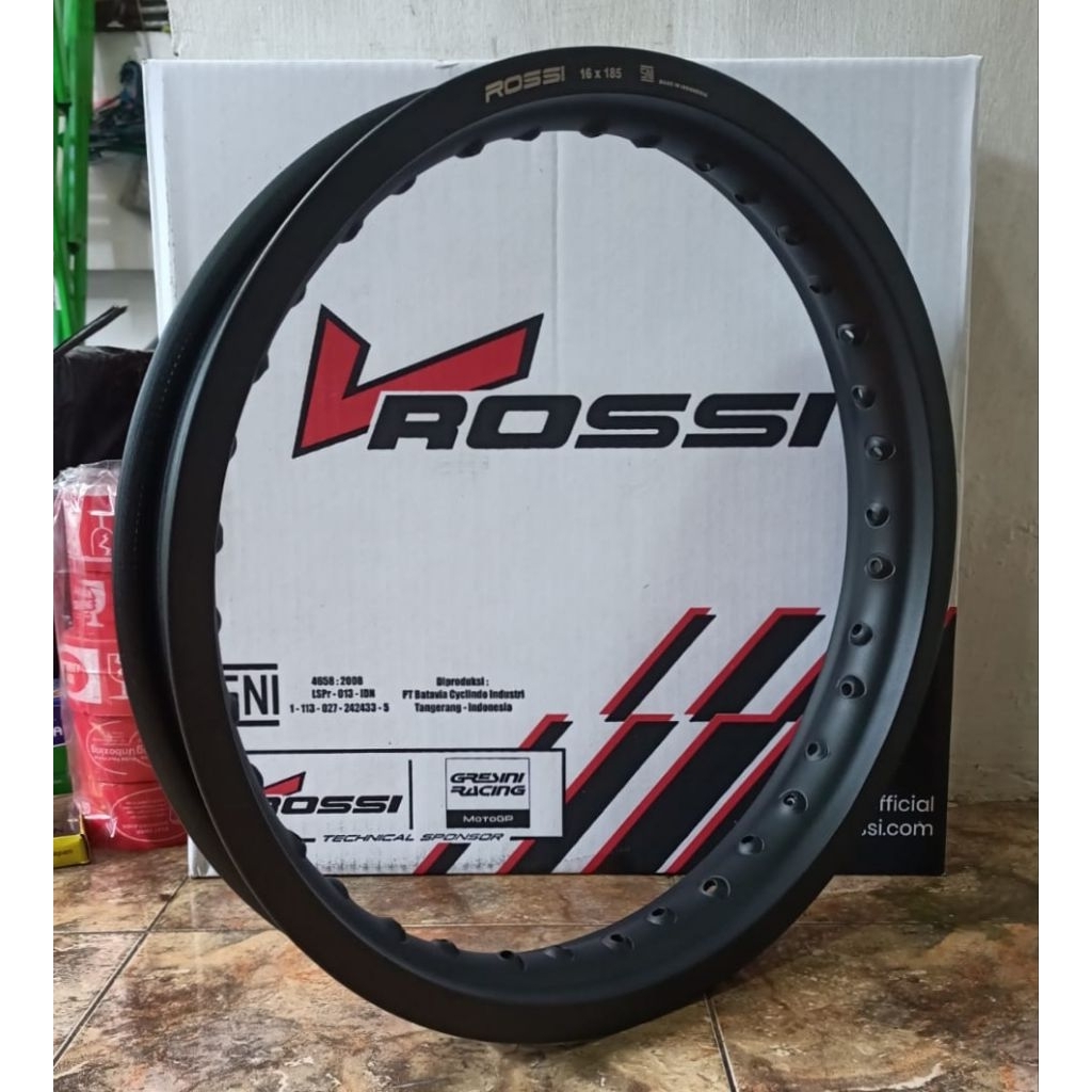 (Harga 1 Pcs / Biji / Satuan) Velg Pelek Pelak Rim Alloy Jari - Jari Merek VRossi Model WM / Kotak Ukuran Ring 16 Lebar 185 / 1,85 Inch Warna Hitam Doft Hole / Lubang Jari - Jari 36 SNI Original VRossi SNI Alloy Rims, Made In Indonesia