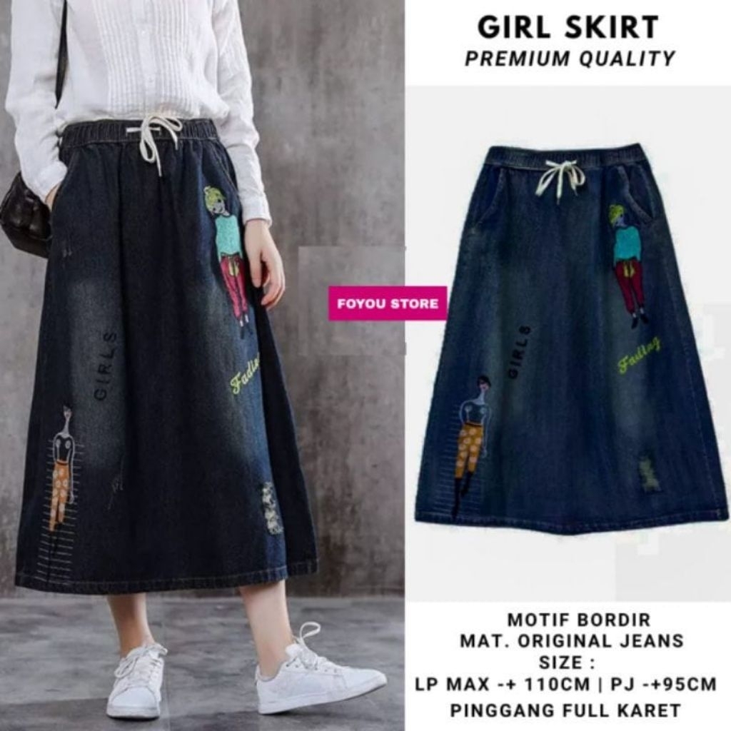 Diva Store - Girl Skirt Rok Jeans Wanita Kekinian Bordir Asli