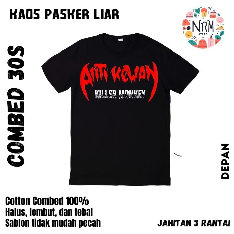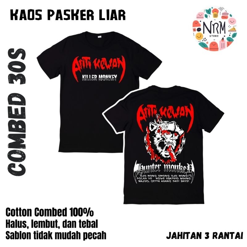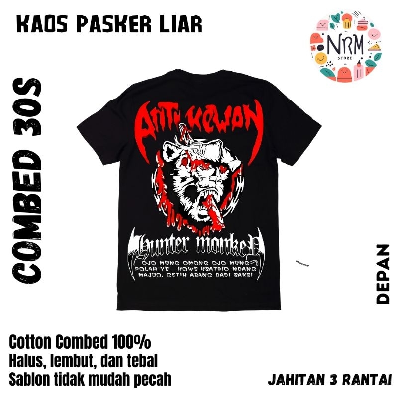 Kaos Anti Kewan Lutung Hunter | Bahan Cotton Combed 30s Premium Hitam | Nyaman Pendek