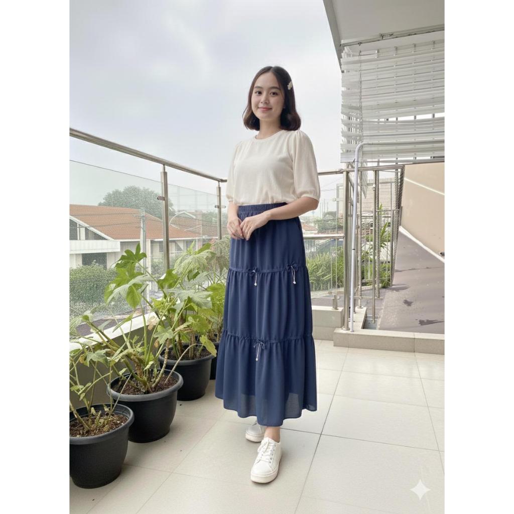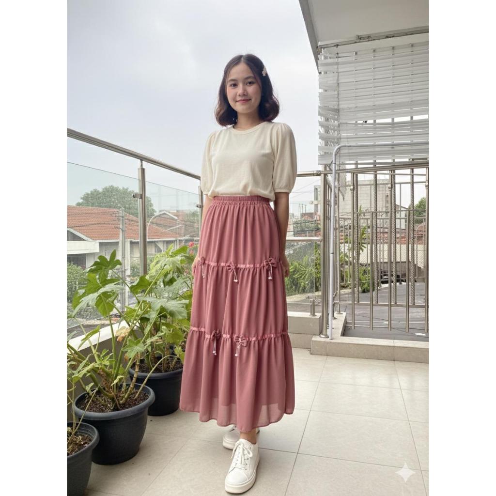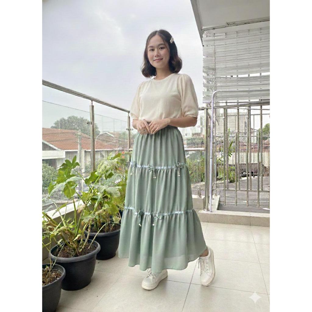 Rok Korean Style Kekinian Model Terbaru 2026 Rok Panjang Maxi Wanita Flowy Skirt Rok A Line Rempel