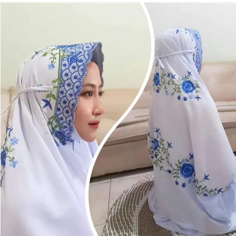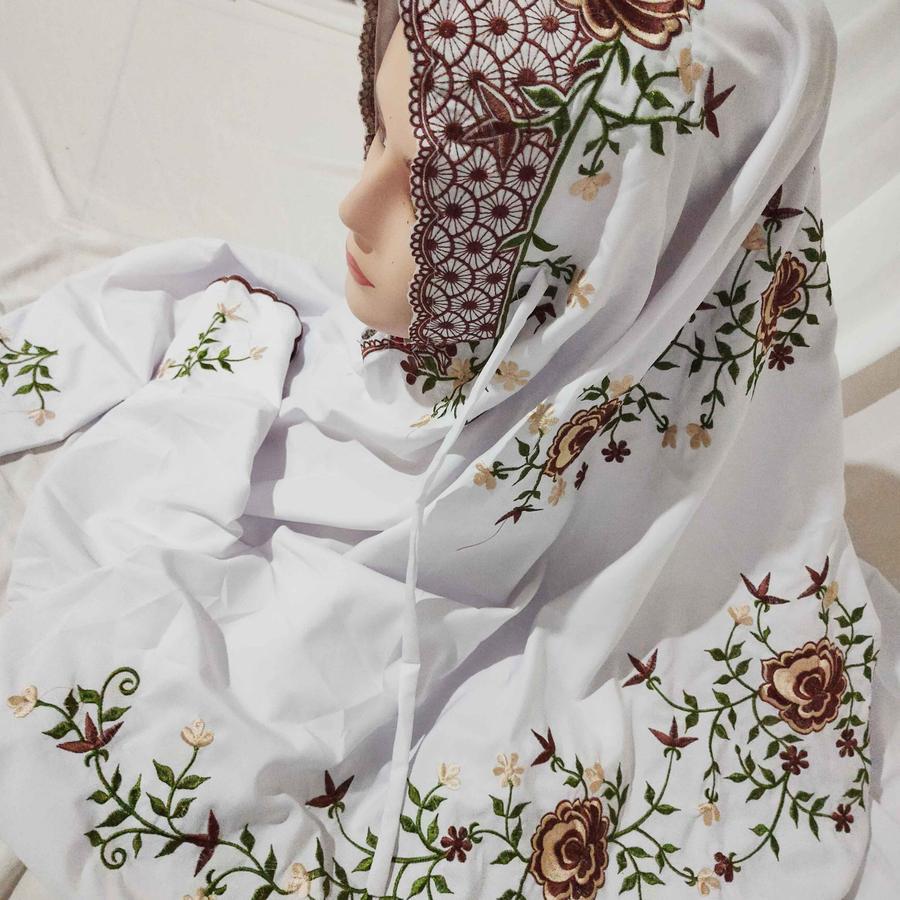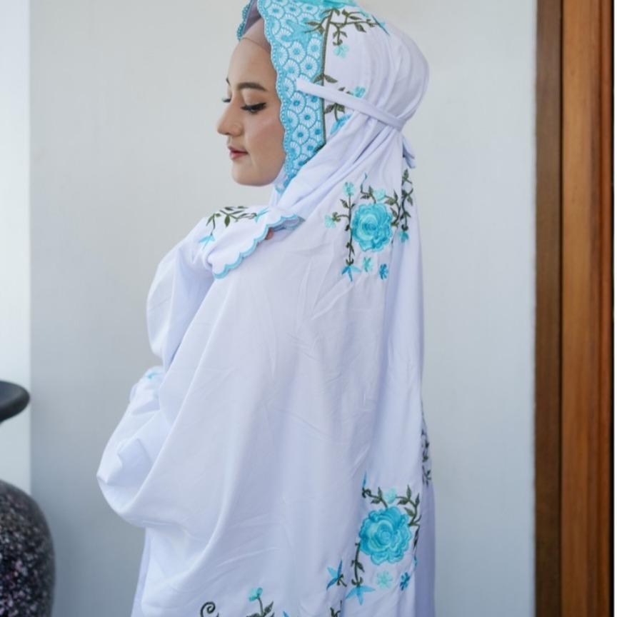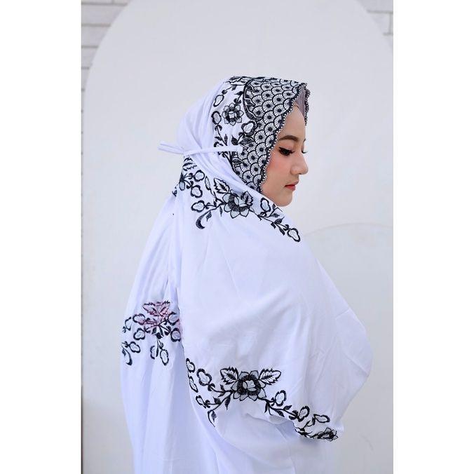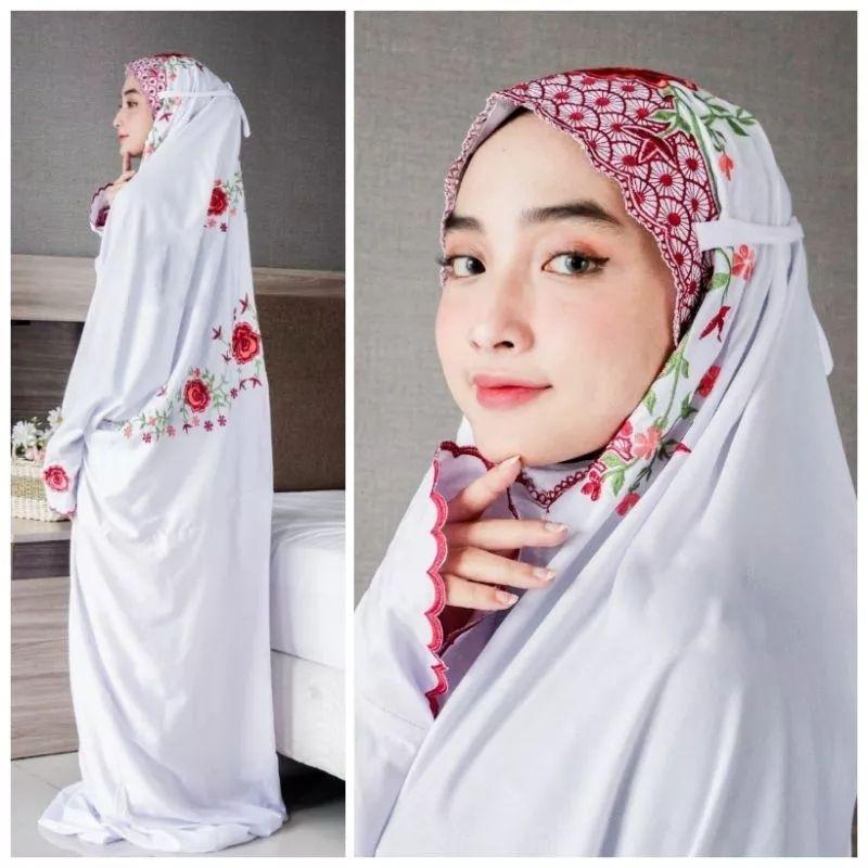 Mukenah Umroh Travel Warna Putih Mukena Terusan Lajuran KAin Katun Polino Mikro Remaja Dewasa Bordir Bunga