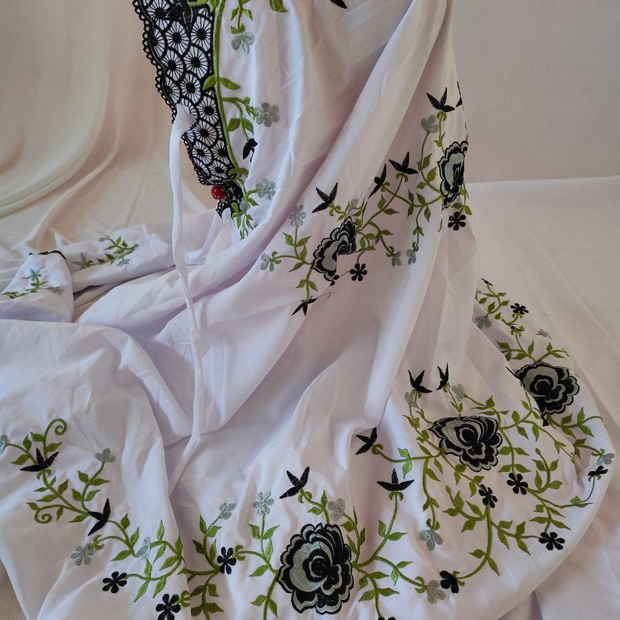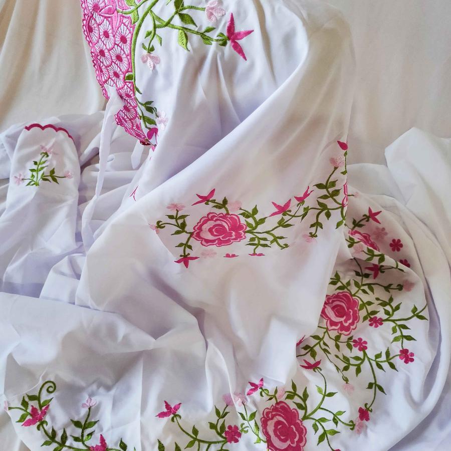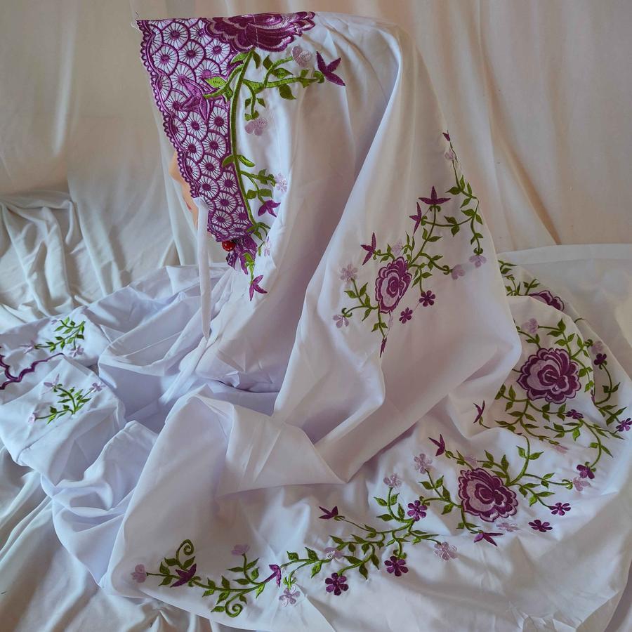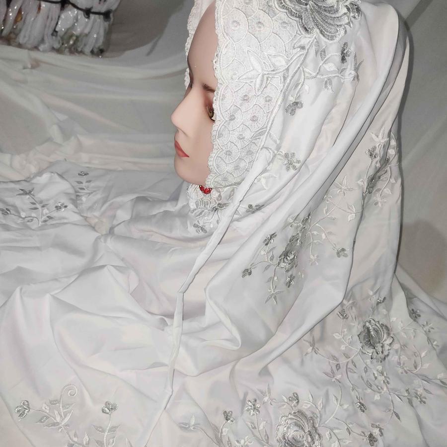 Mukenah Umroh Travel Warna Putih Mukena Terusan Lajuran KAin Katun Polino Mikro Remaja Dewasa Bordir Bunga