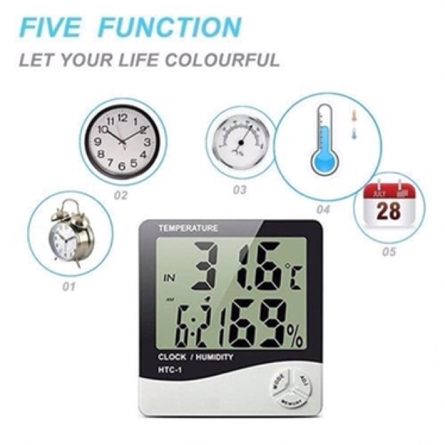 HTC-1 Digital Hygrometer Temperature htc1 Meter Termometer Room Thermometer Clock Alarm Jam