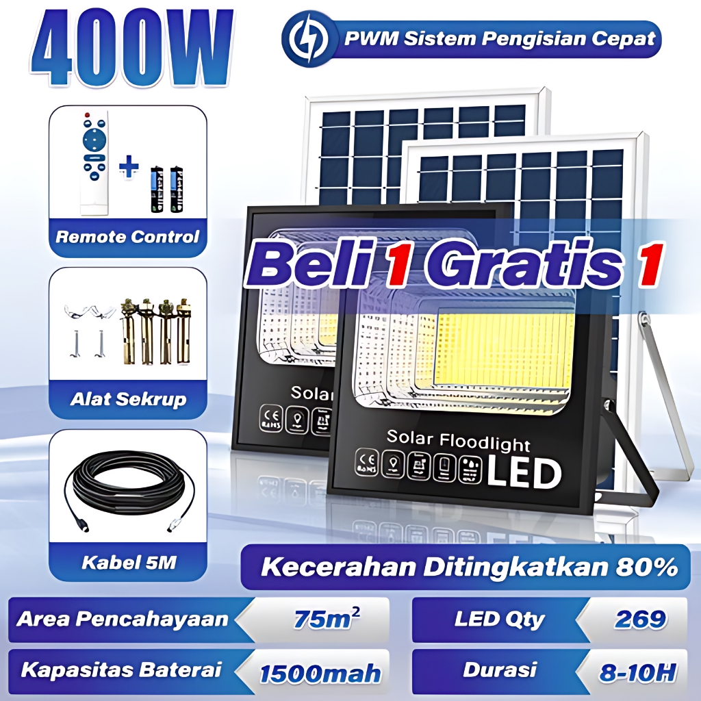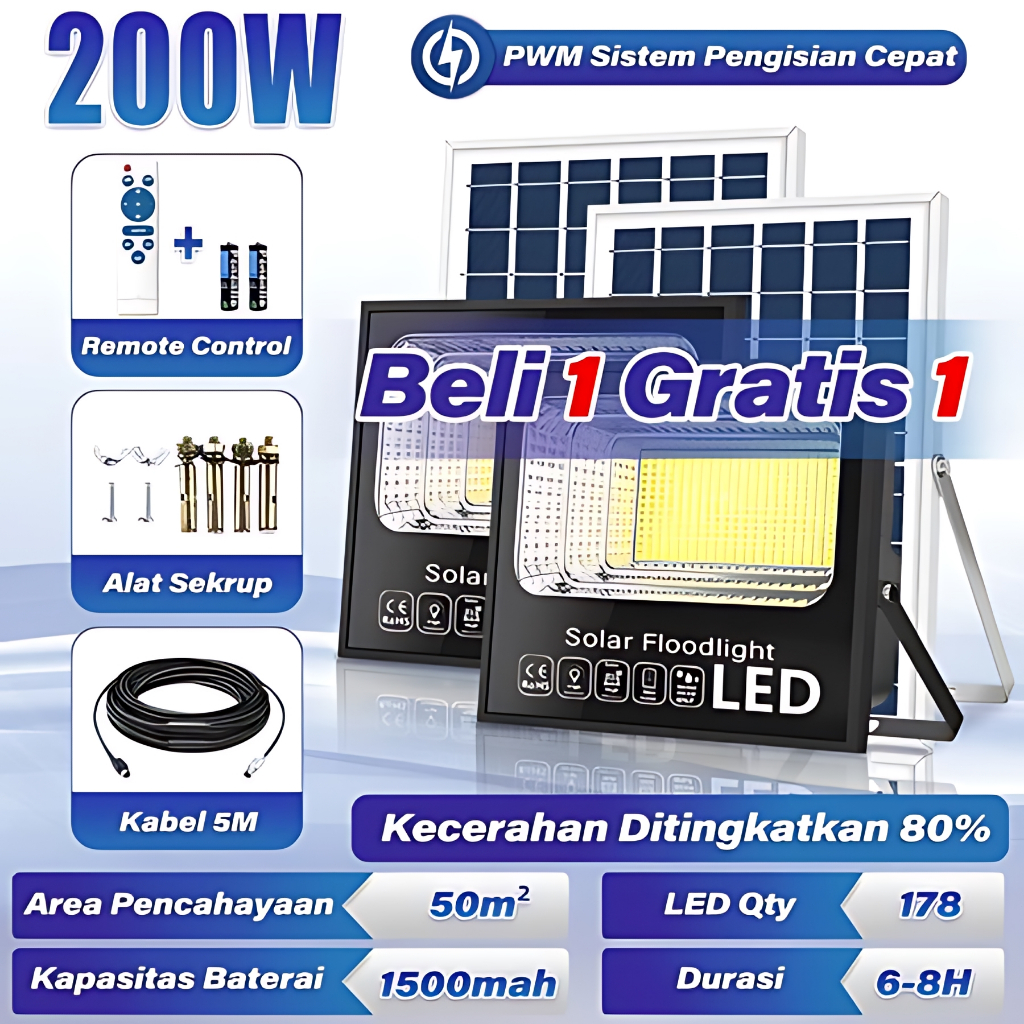 【BELI 1 GRATIS1】1000W Lampu jalan tenaga surya 1000 watt lampu solar cell Emergency-Super-terang-tahan-lama-24H-Lampu-tenaga-matahari-50-XBright-MAXlampu solar LED lampu tenage surya lampu tenaga matahari