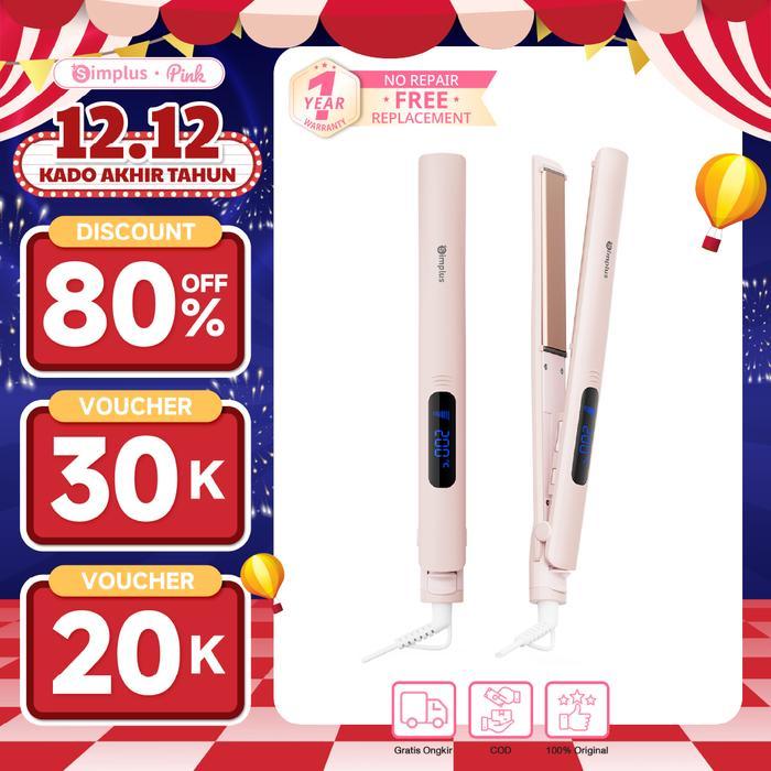 [12.12 Deals Akhir Tahun] Simplus Pink- Catokan Osaka Led Hair Straightener 9 Tingkat Pengaturan
