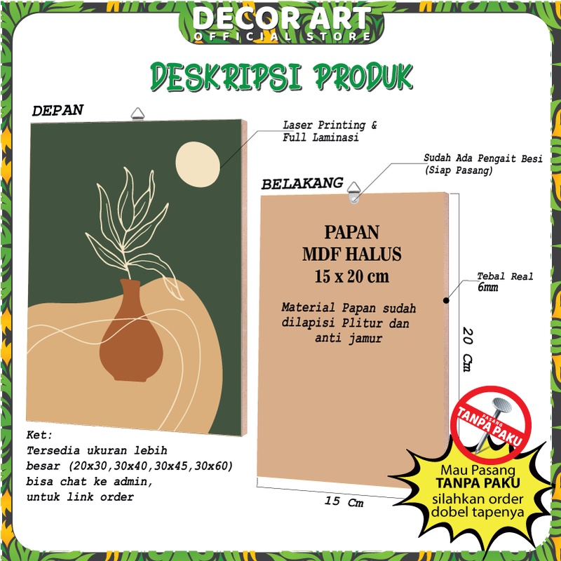 DecorArt 15x20 Cm Hiasan Dinding Dekorasi Pajangan Rumah Tema Abstrak Aesthetic Minimalis Motif ABS
