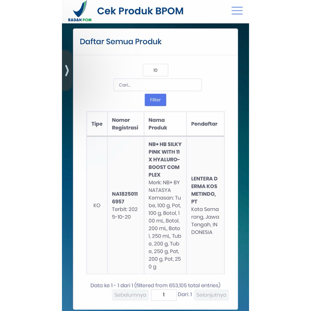 HB LOTION NB+ SILKYPINK 11X HYALURO-BOOST COMPLEX NATASYA BEAUTY 100ML