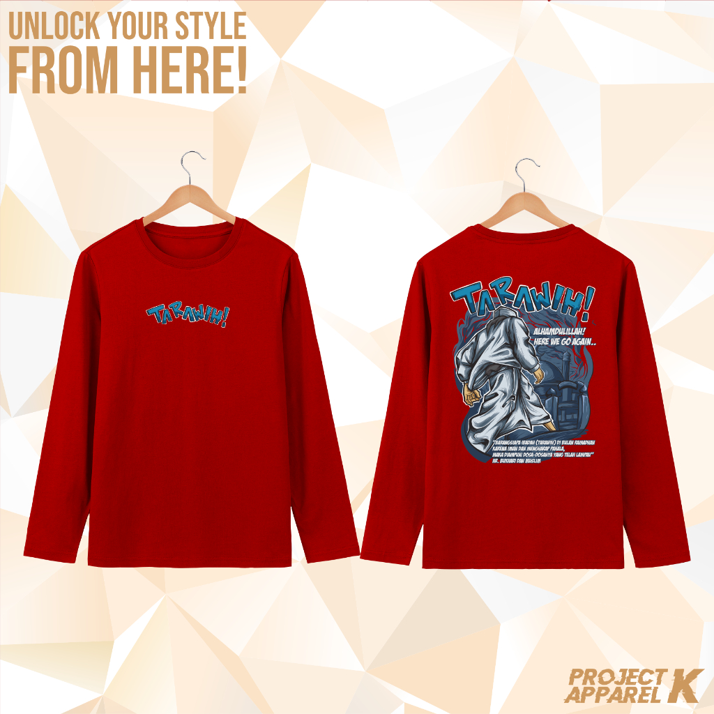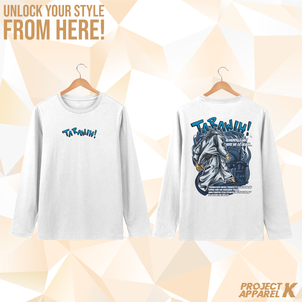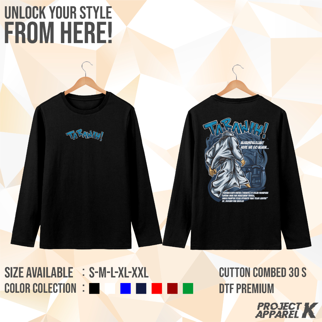T-SHIRT KAOS DISTRO LENGAN PANJANG RAMADHAN VIBES TARAWIH ALHAMDULILLAH HERE WE GO AGAIN KAOS UNISEX - COTTON 30S SABLON DTF