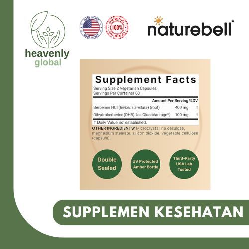 Naturebell Dihydroberberine + Berberine HCl 500 mg- 120 Veggie Capsules Non-GMO