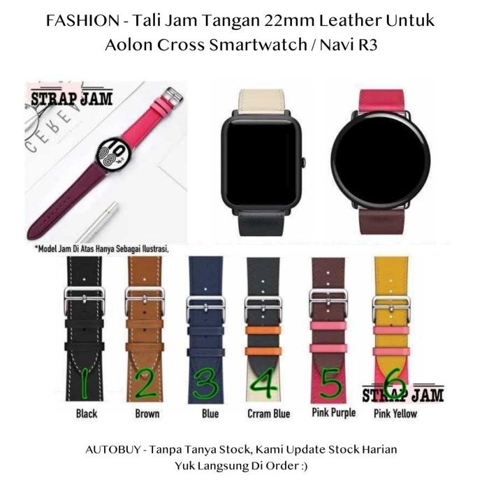 TERBARU - Fashion 22mm Leather Strap Aolon Cross Smartwatch / Navi R3 - Tali Jam Tangan Kulit Stylish Pria Wanita
