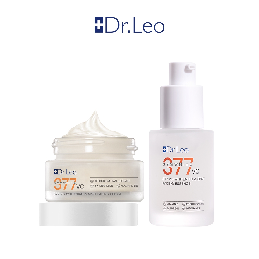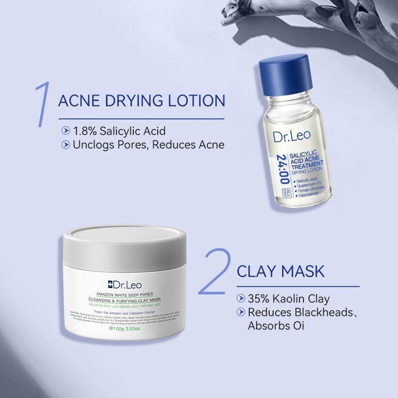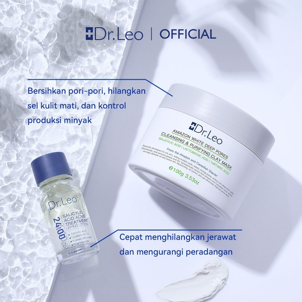 Dr.Leo Acne Set 4pcs skincare paket jerawat-Salicylic Acid Acne Essence Drying Lotion 10mL+Blackhead Removal Acne clay Mask 100g+Brightening Moisturizer Gel Symwhite 377 VC Niacinamide Whitening/Glowing Cream 30g pemutih wajah