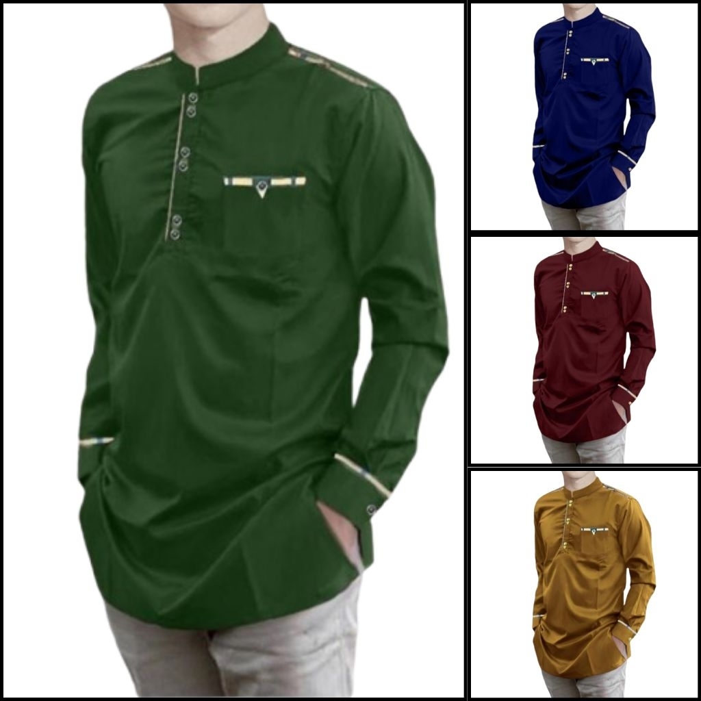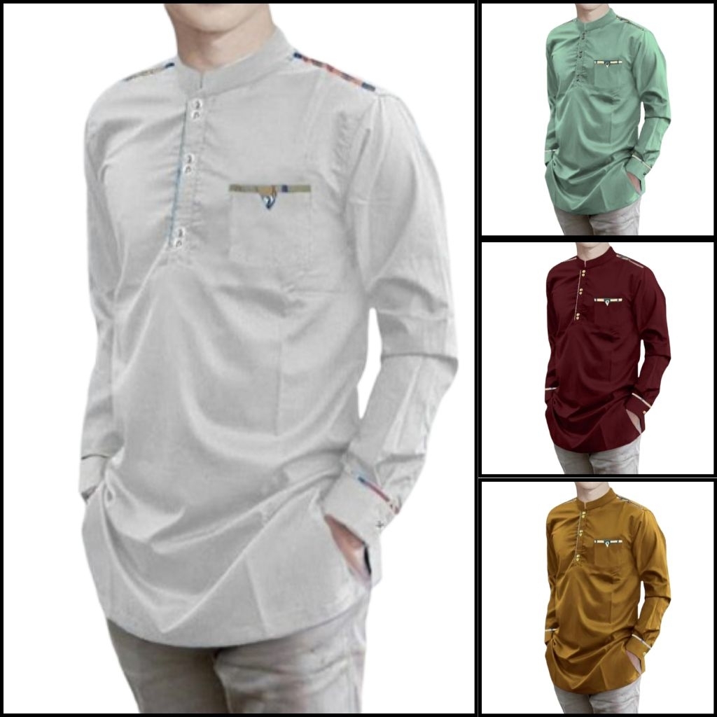 Baju Koko QURTA TOJIRO lengan panjang Pashion muslim pria kualitas premium bahan katun tebal dan lembut warna army,putih, navy Tersedia semua jenis ukuran