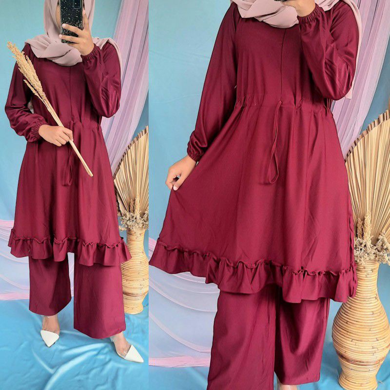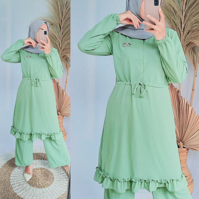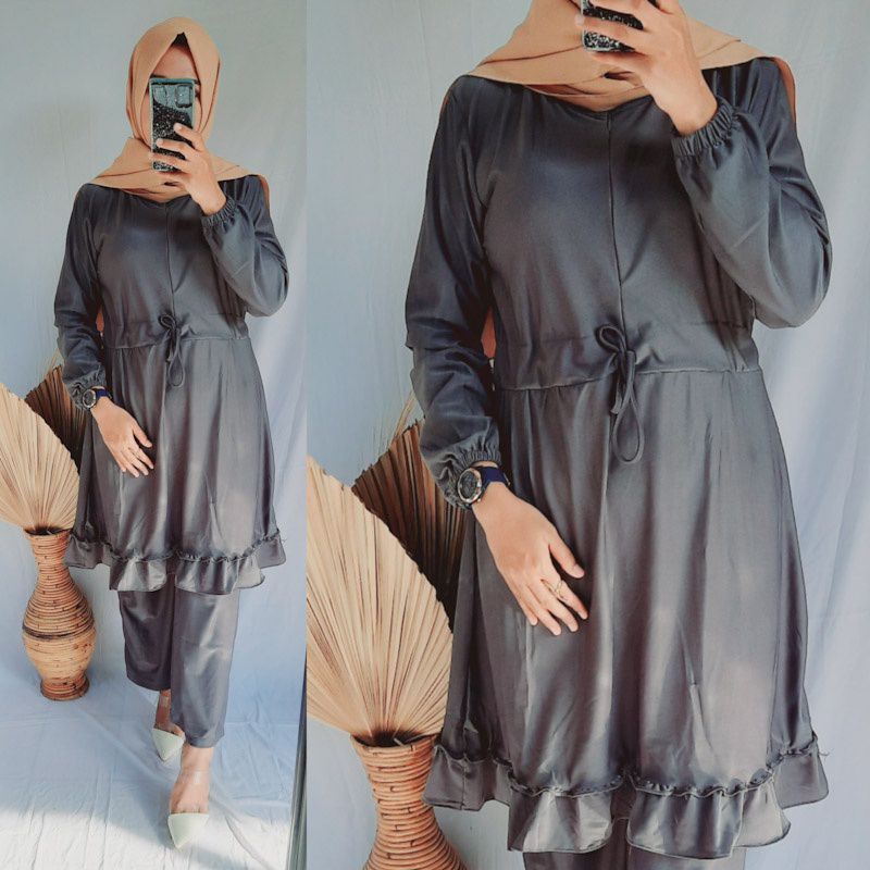 Baju wanita setelan tunik celana lebaran