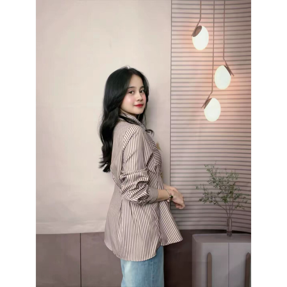 FADFAD Atasan kemeja Bermotif Lengan Panjang Gaya Kasual