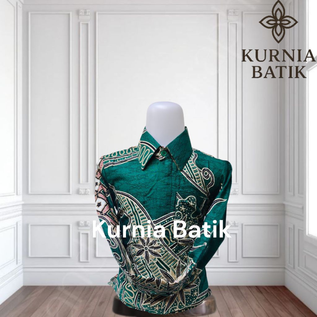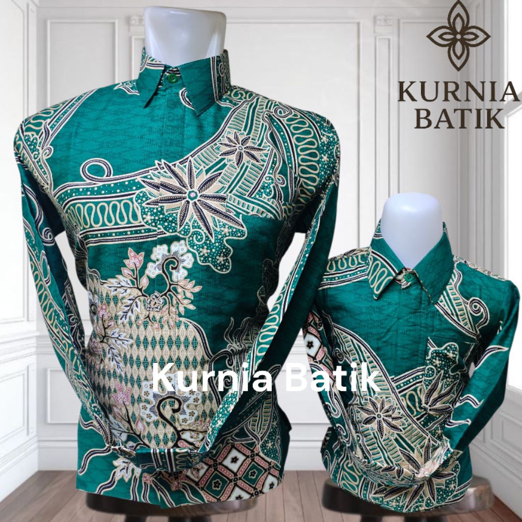 Green Emerald, kemeja batik couple ayah dan anak warna emerald, bahan katun solo, furing, motif new