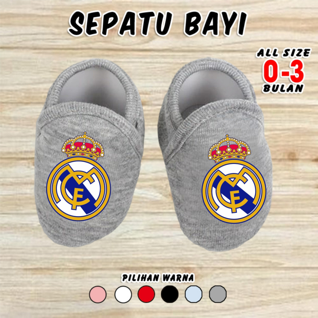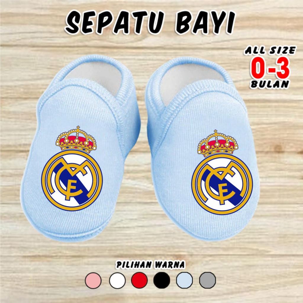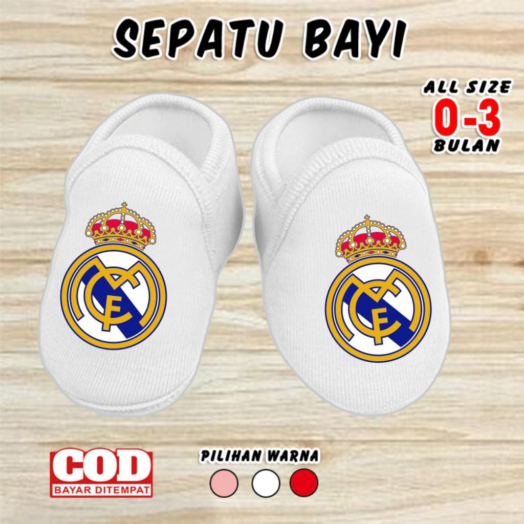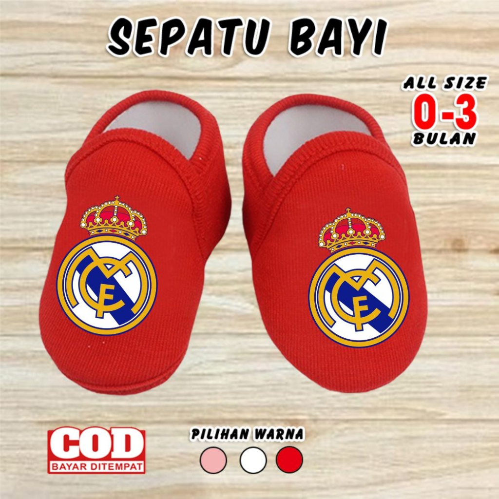 Sepatu Bayi Klub Bola REAL MADRID Laki Laki Perempuan Cewek Cowok Boy Girl 0 3 Bulan Kado Baby Shoes Newborn Baru Lahir Lucu
