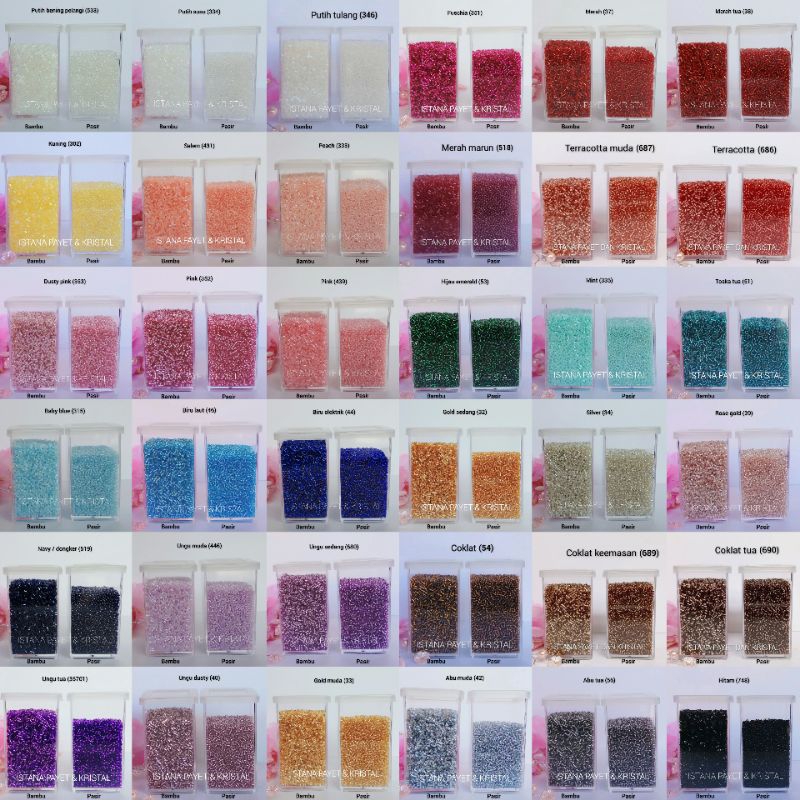 TERLENGKAP Payet jepang MGB kemasan 25 gram (bambu atau pasir) putih, krem, kuning, salem, peach, pink, fuschia, merah, marun, terracotta, hijau, toska, mint, biru, ungu, gold, silver, rose gold, coklat, abu-abu dan hitam