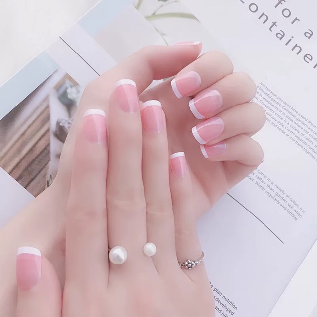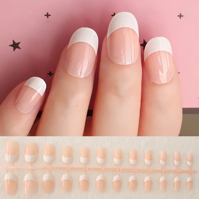 CQ08 - 24pcs Kuku Palsu Warna Bening Putih Wedding Fake Nails White Nailart Fake Nails Polos Halal