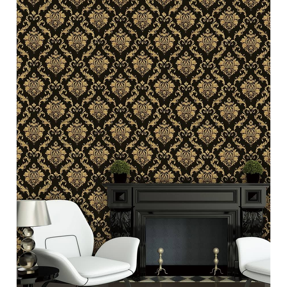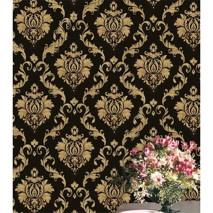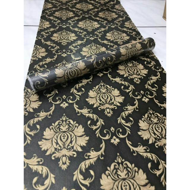 WALLPAPER STIKER DINDING MOTIF BATIK HITAM GOLD