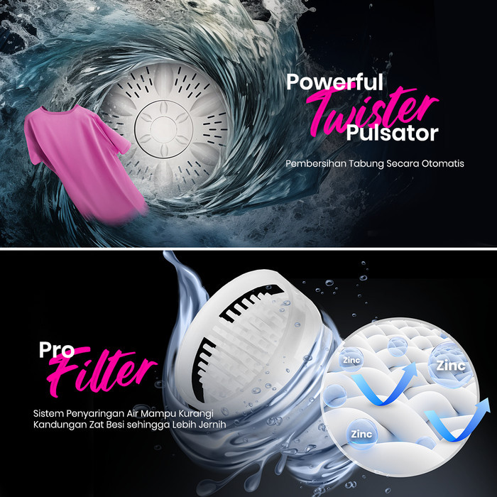 Reiwa Mesin Cuci 2 Tabung 7Kg WS-0801SPK Sakura Pink