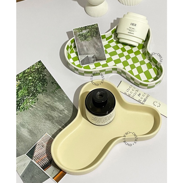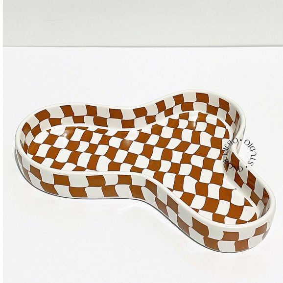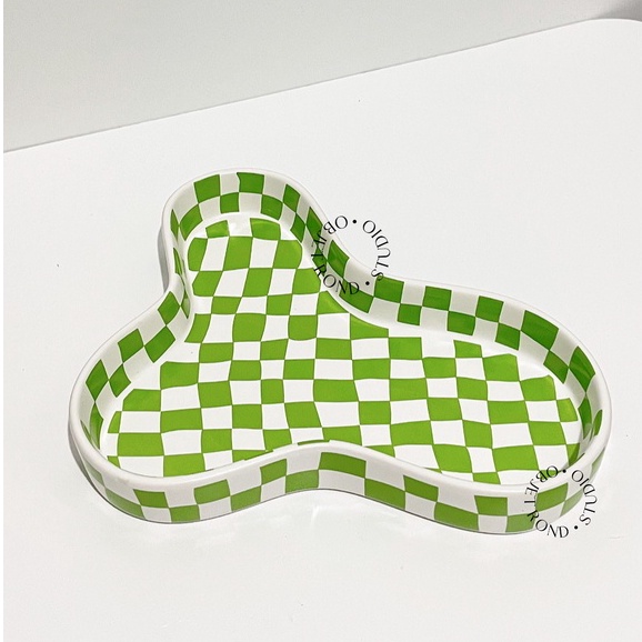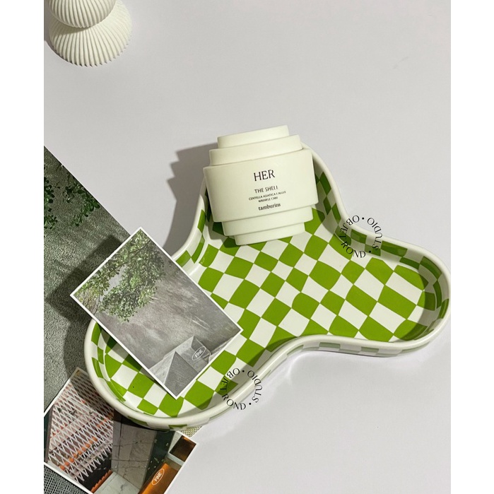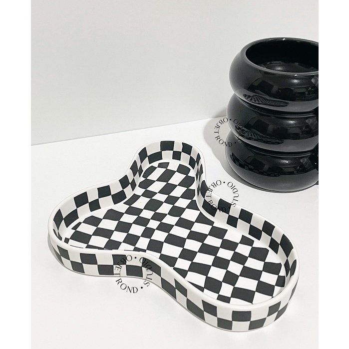 [objet rond] mini tray | checkered hiasan home decor pajangan home cafe korea style quirky trinket