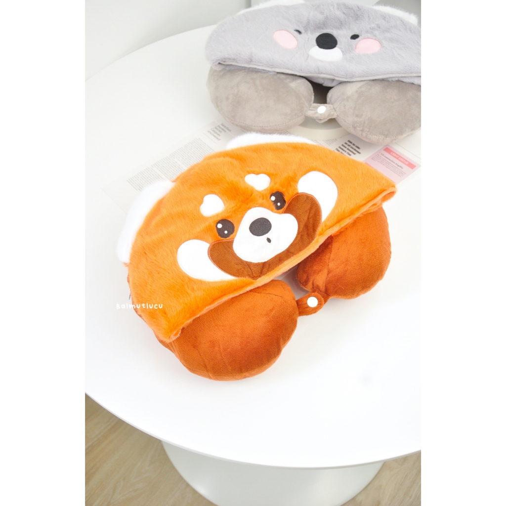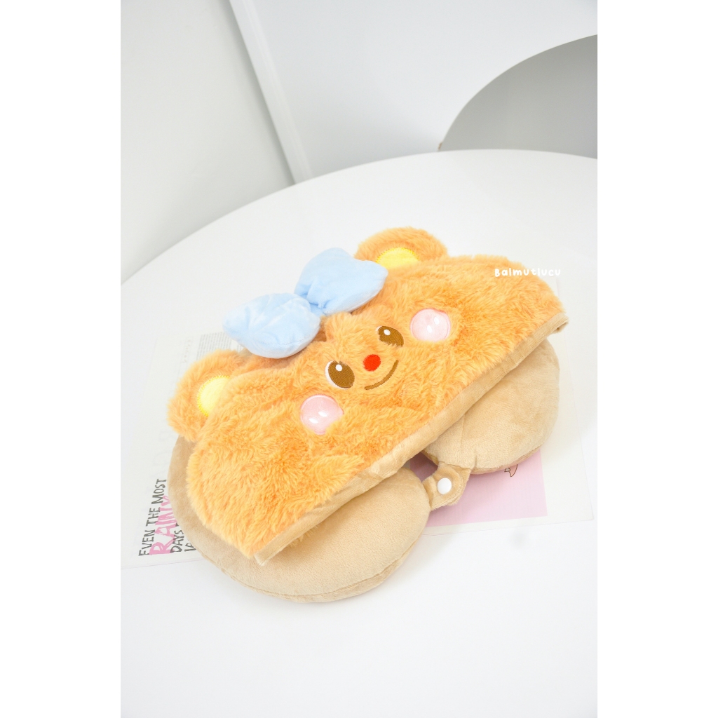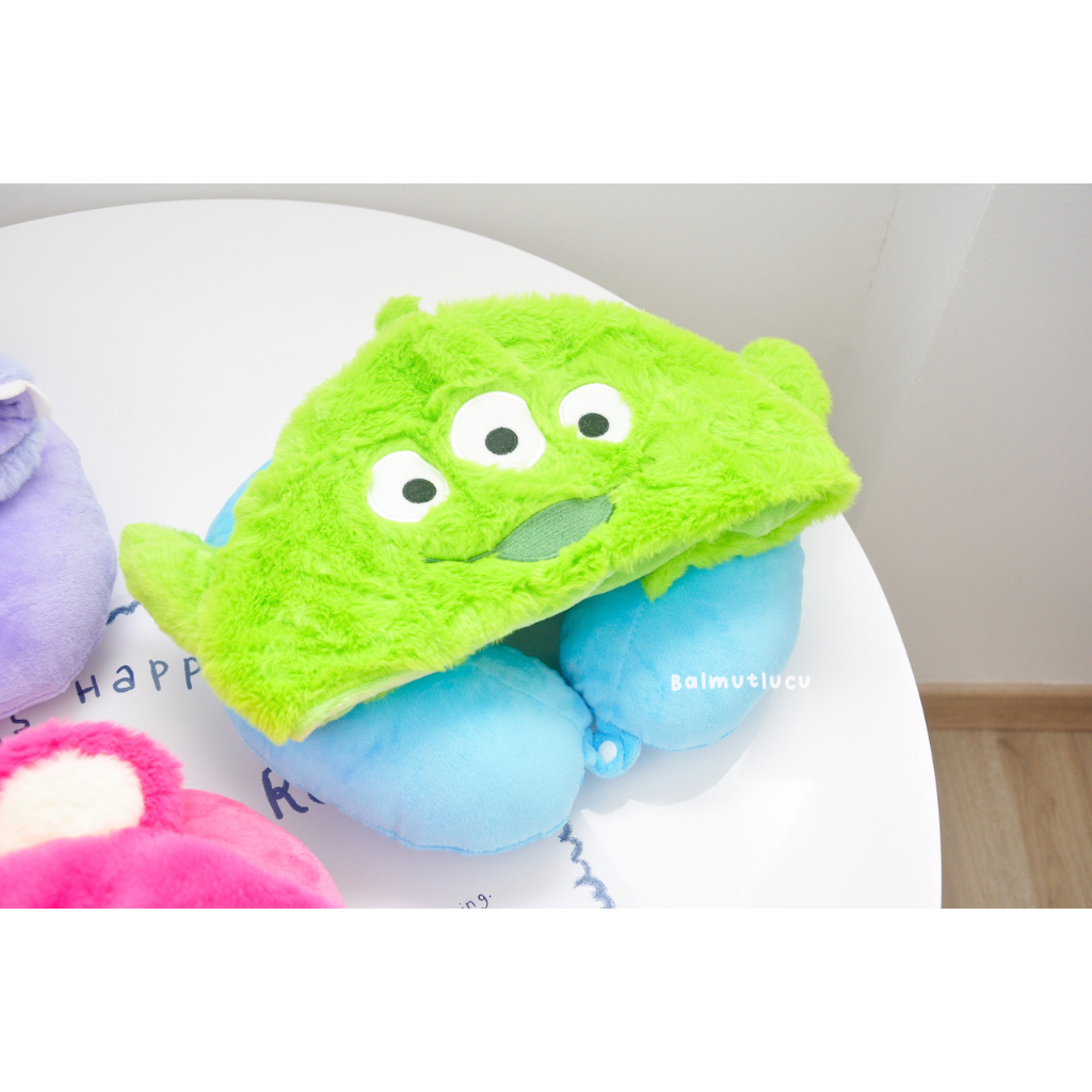 BALMUTLUCU | Bantal Leher Hoodie Karakter Lucu Kuromi My Melody Cinnamoroll LinaBell Alien Lotso Pooh Stella Lou Duffy Shellie May | U-shaped Neck Pillow | Bantal Traveling Boneka Bentuk Topi
