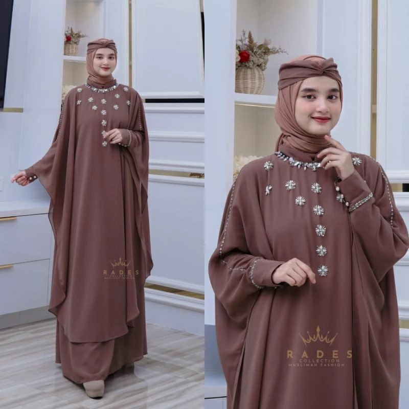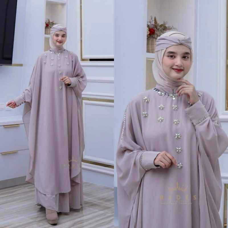 NADIA Kaftan Full Puring Bahan Ceruty Set Turban Payet Mewah Elegan Cantik Model Terbaru dan Kekinian