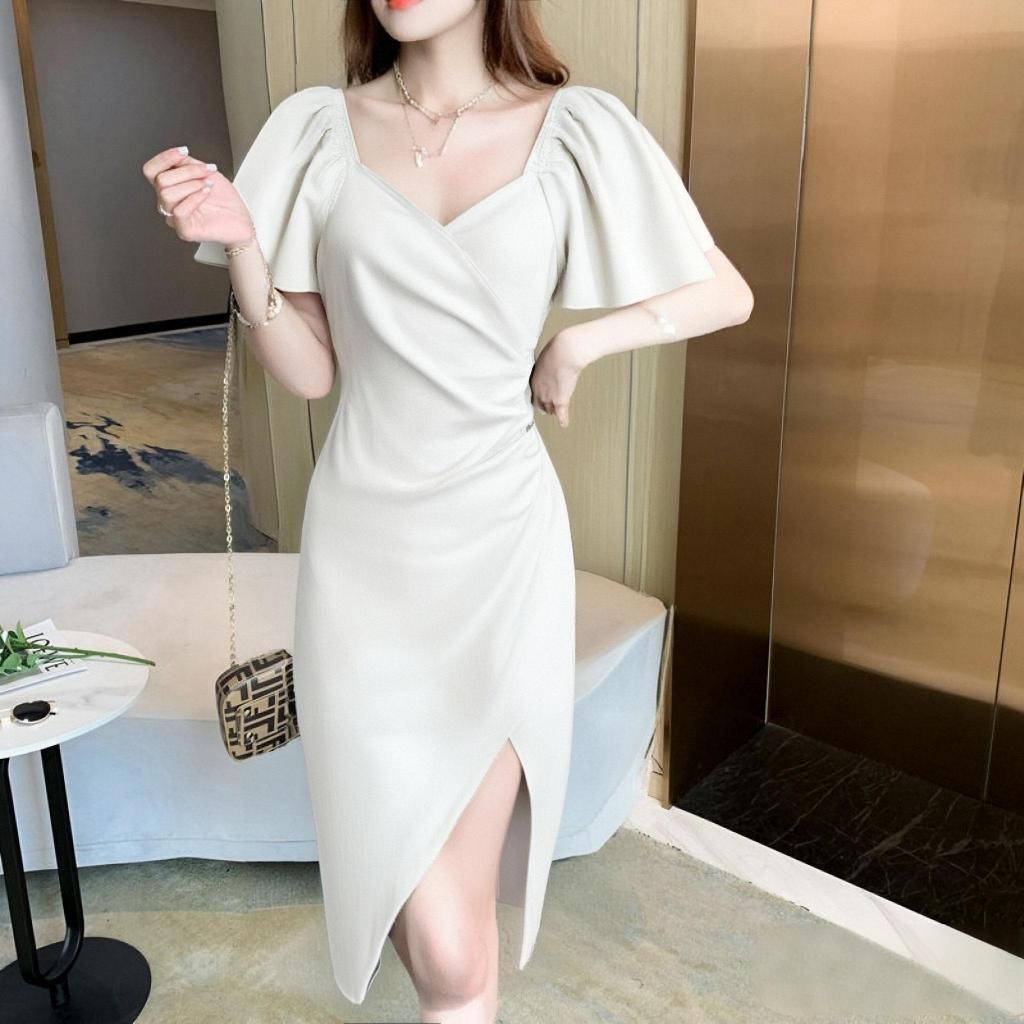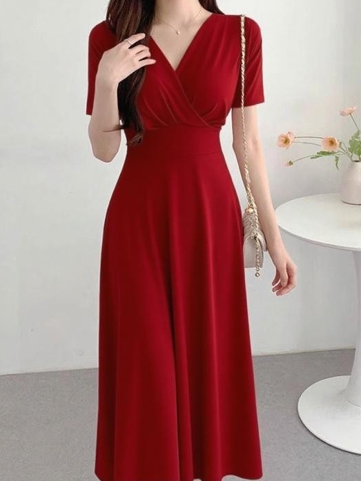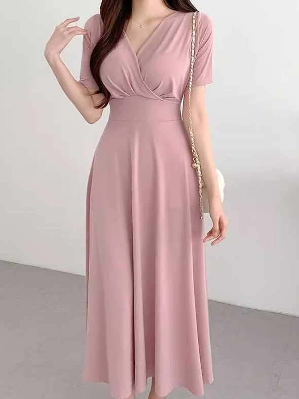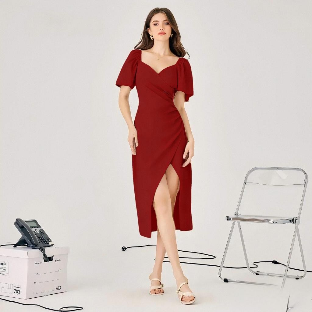 Hertha Duga long beige dress coklat korean style elegant casual midi dress vintage terbaru 2026 kondangan wanita kekinian