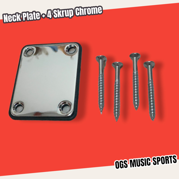 Neck Plate Gitar Chrome - BK Tanpa Skrup