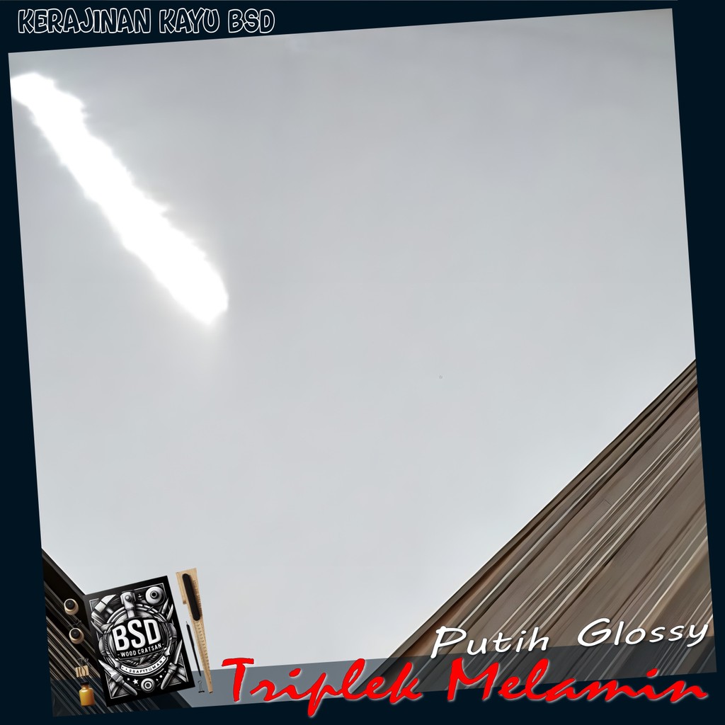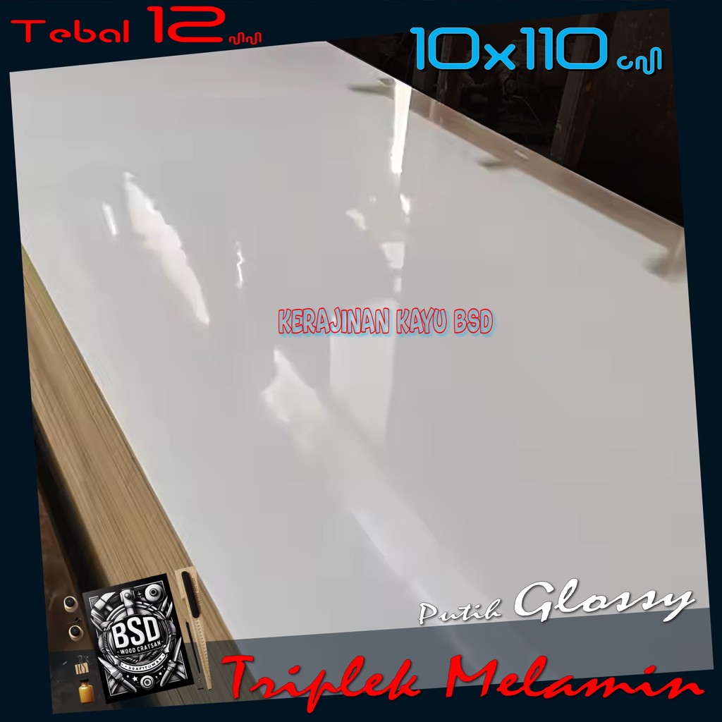 Triplek Putih GLOSSY 1 Muka 12mm 10x110 cm ( 110x10 cm | ISI 2 LEMBAR ) Melamin Glossy 12mm 10x110cm