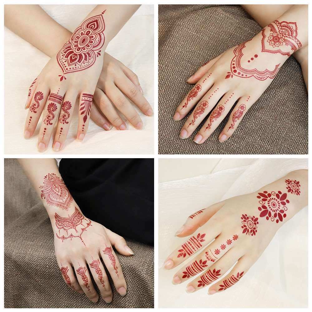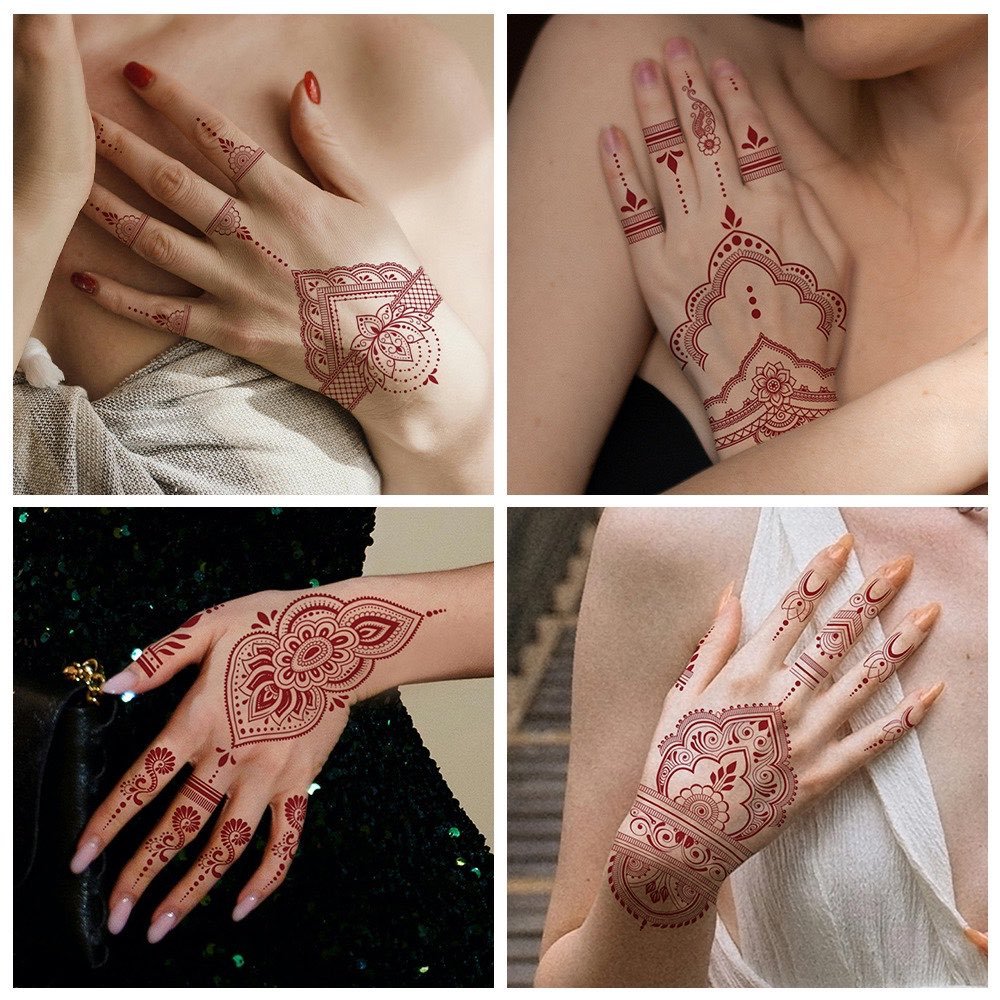 Stiker tato henna merah tato pengantin lengan seksi buat pesta dan pernikahan