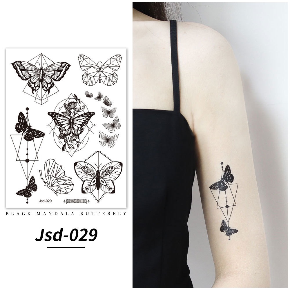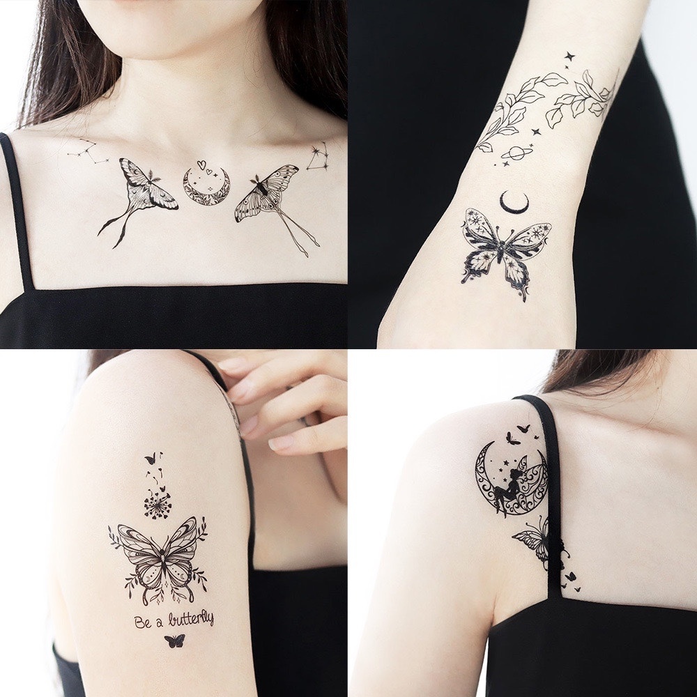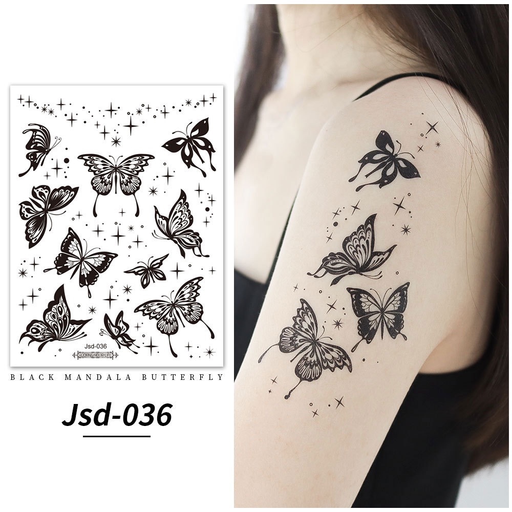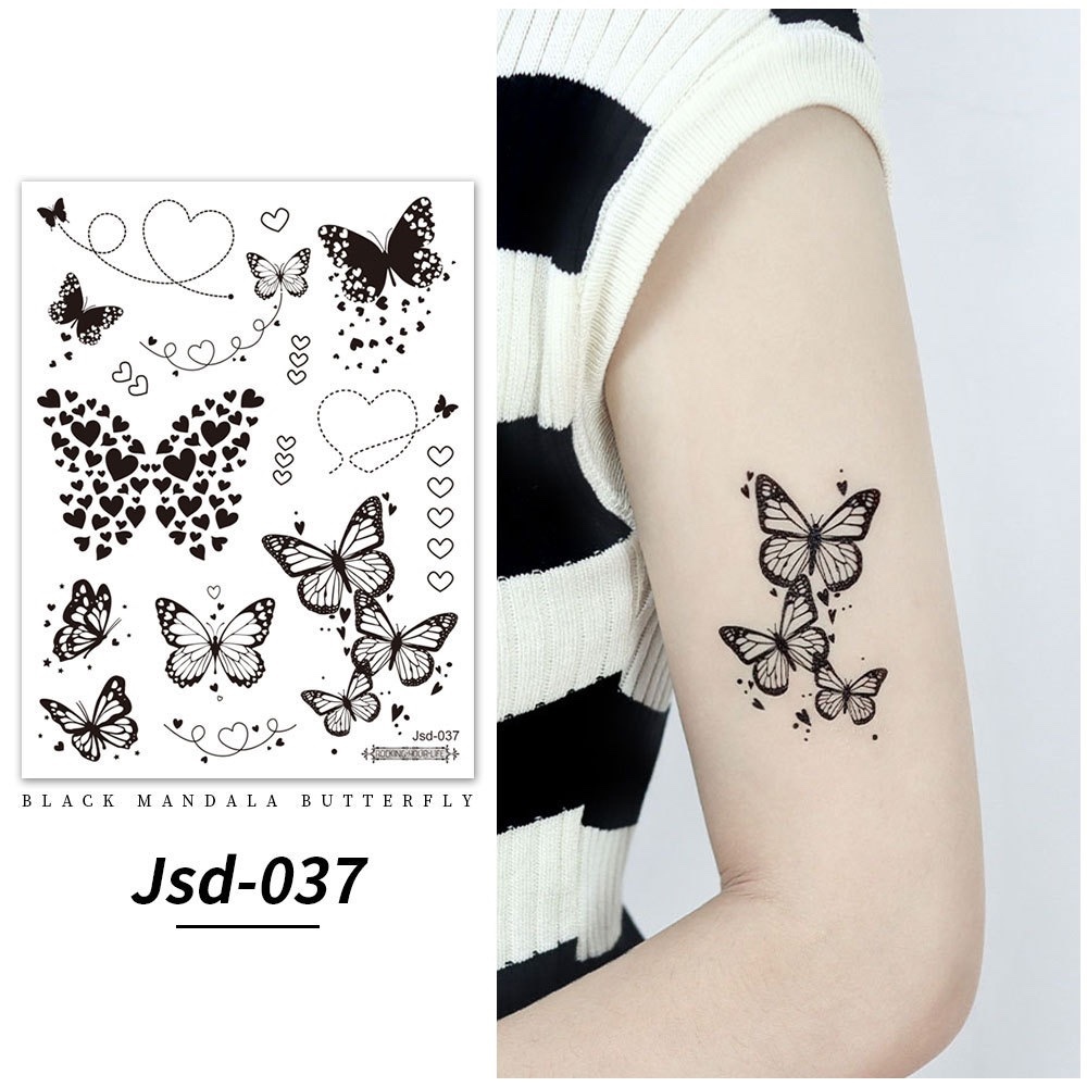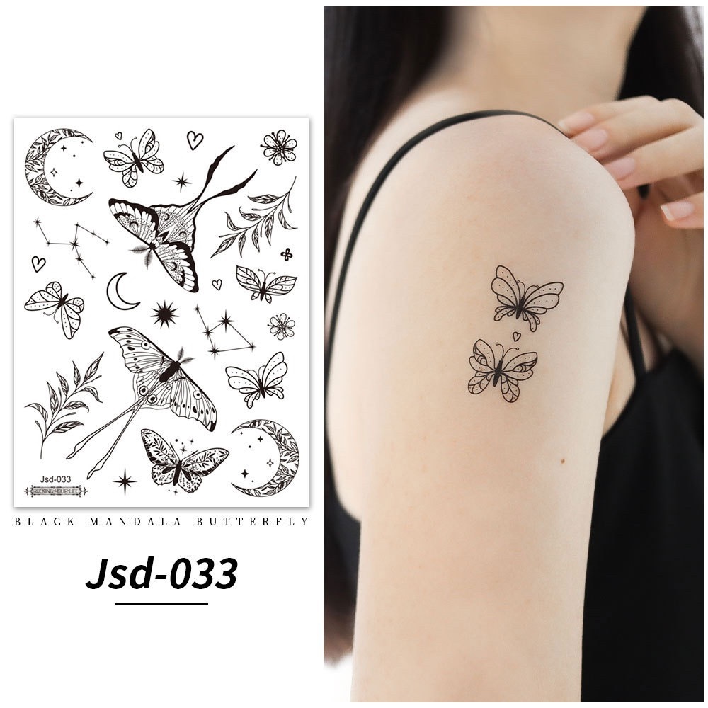 Stiker tato kupu-kupu hitam / tato temporer dada perempuan seksi / tato kupu-kupu cantik / tato seksi 2