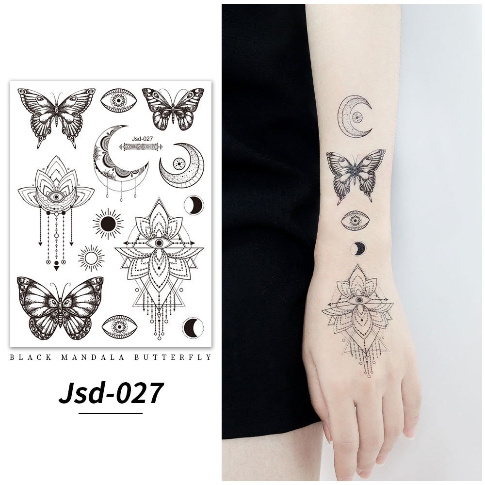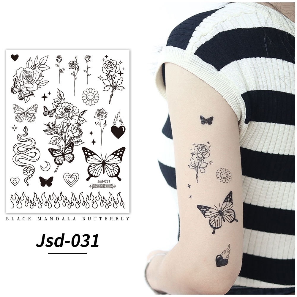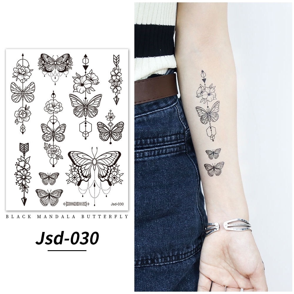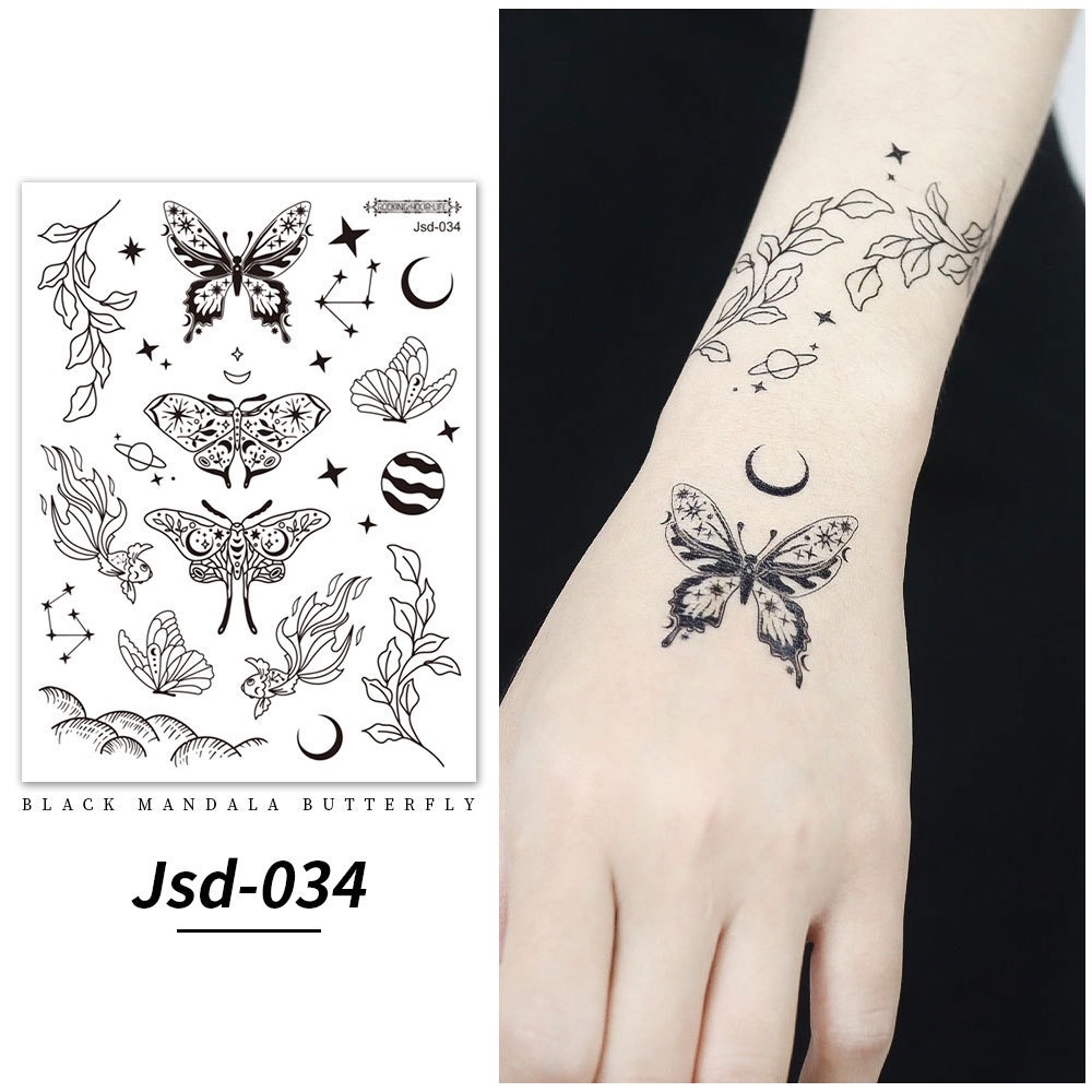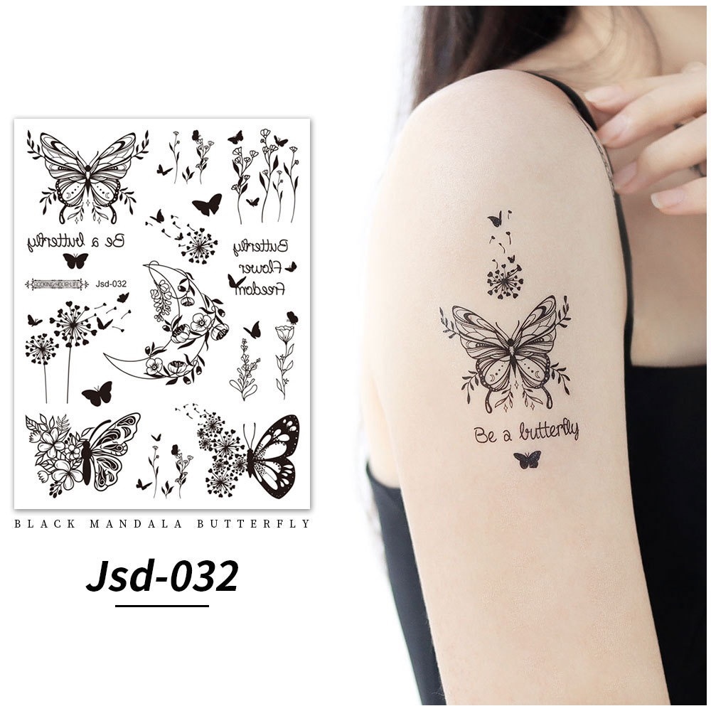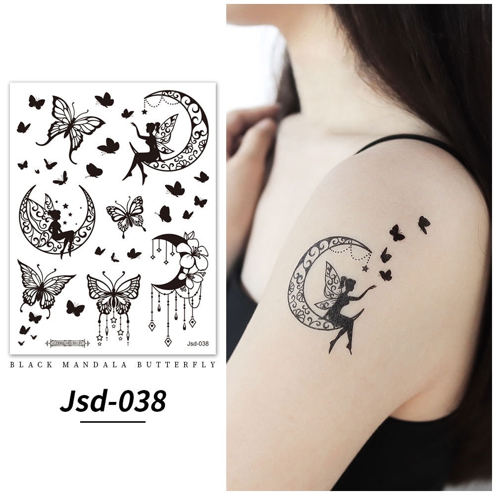 Stiker tato kupu-kupu hitam / tato temporer dada perempuan seksi / tato kupu-kupu cantik / tato seksi 2