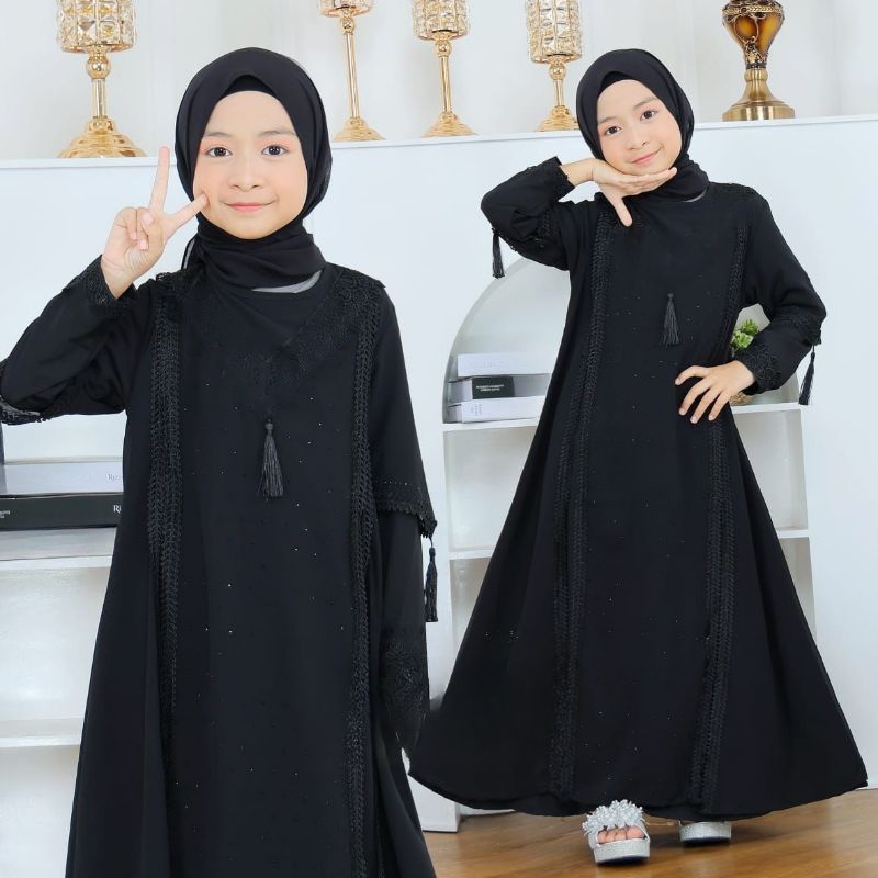 Gamis Abaya Anak Tanggung 6tahun sampai 12 tahun hitam dan Putuh Terbaru