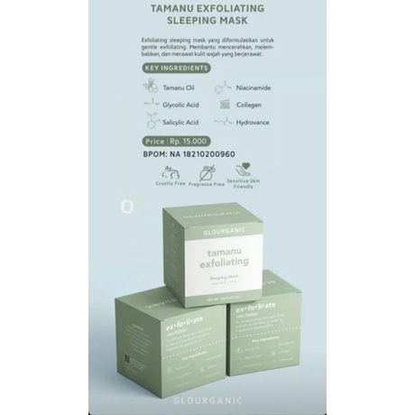 READY SIAP KIRIM FREE GIFT Glourganic Masker Sleeping Mask Tamanu Exfoliating / Watermelon Hydrating
