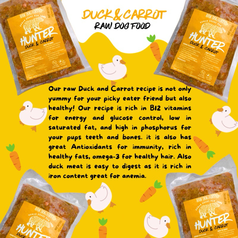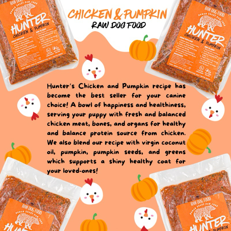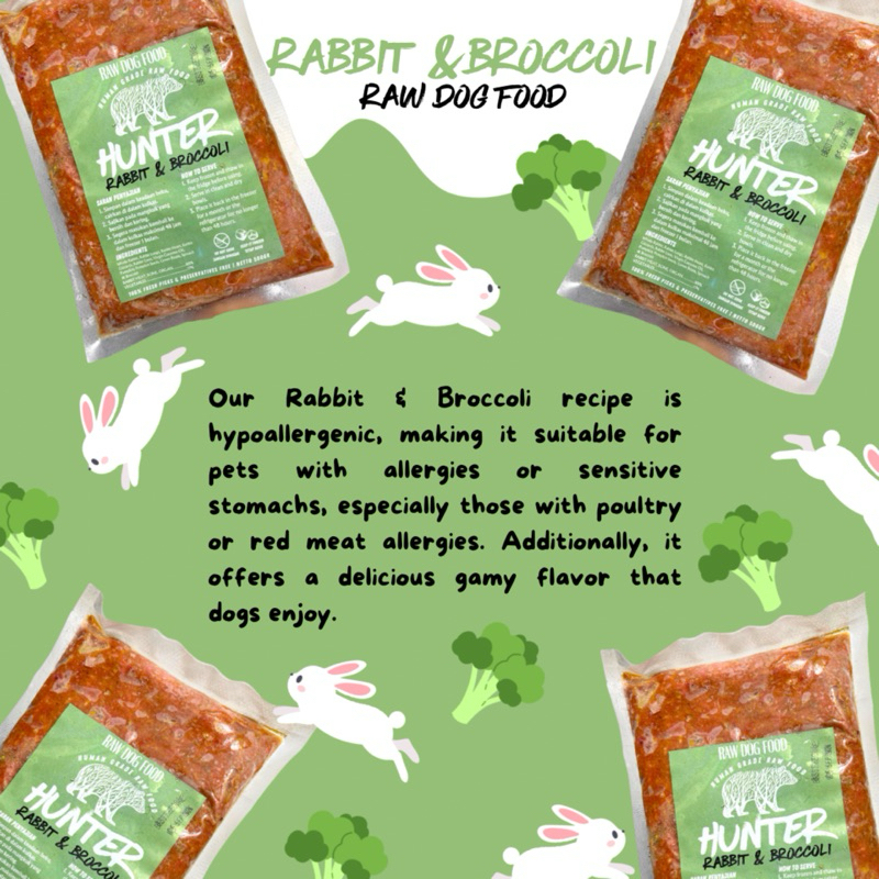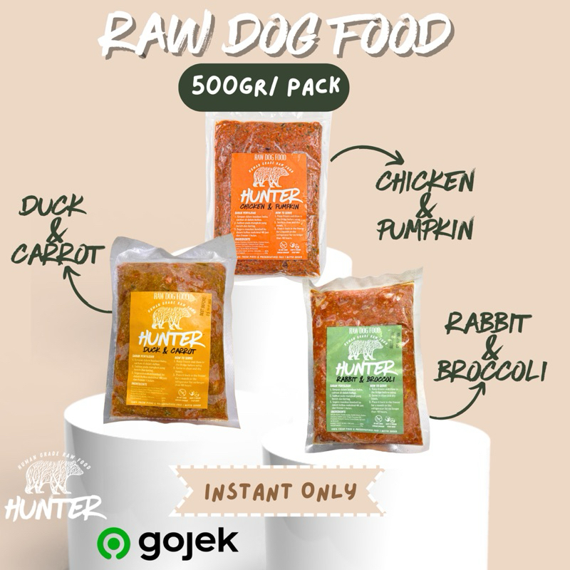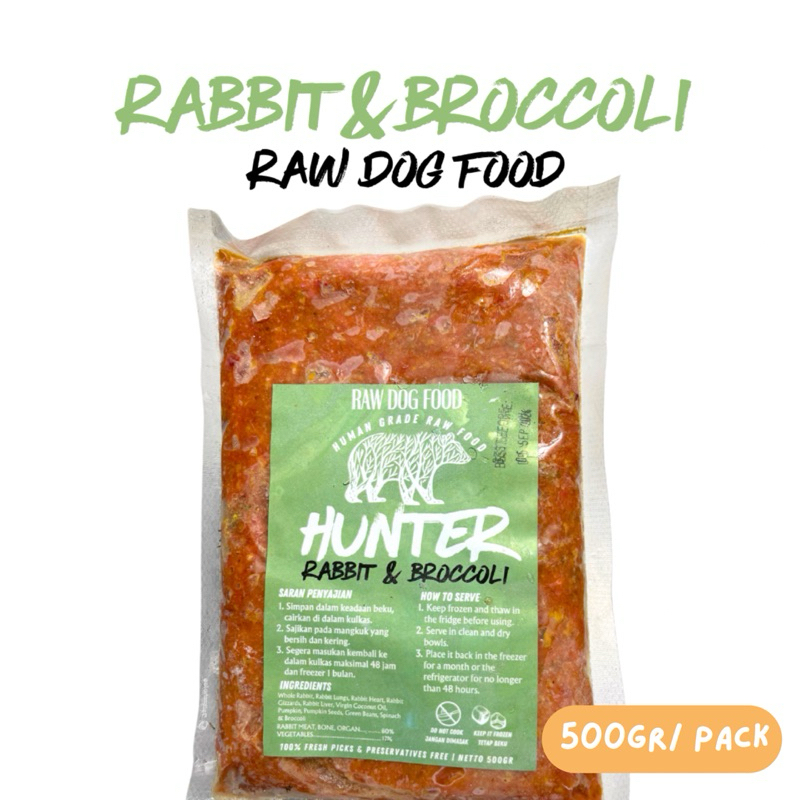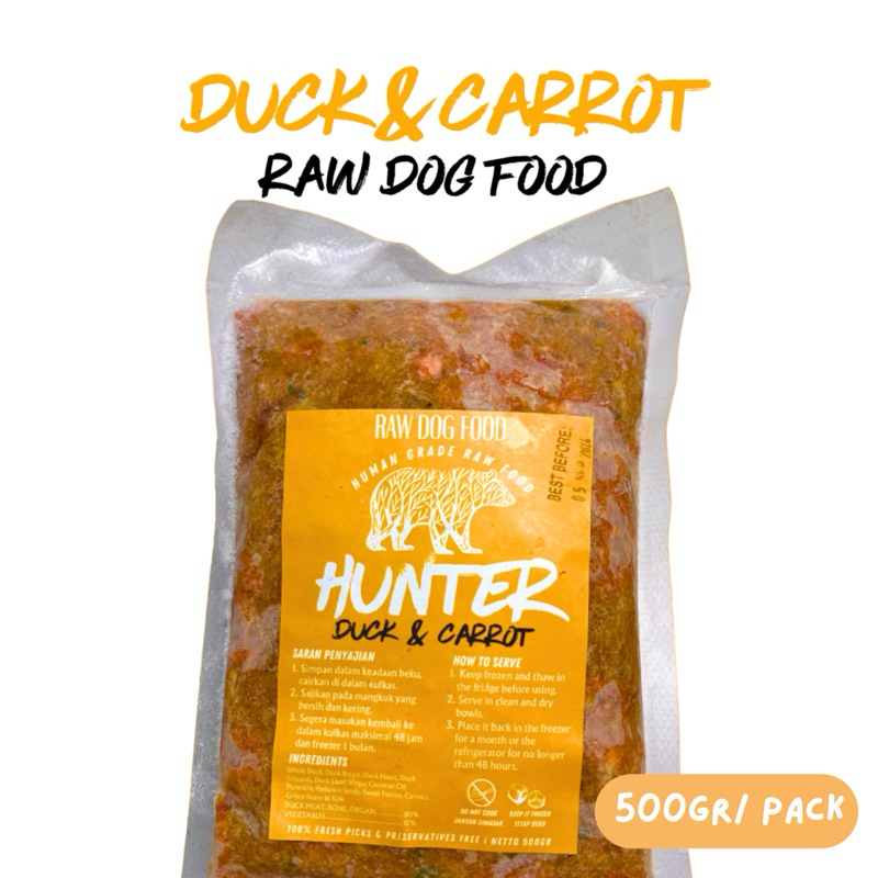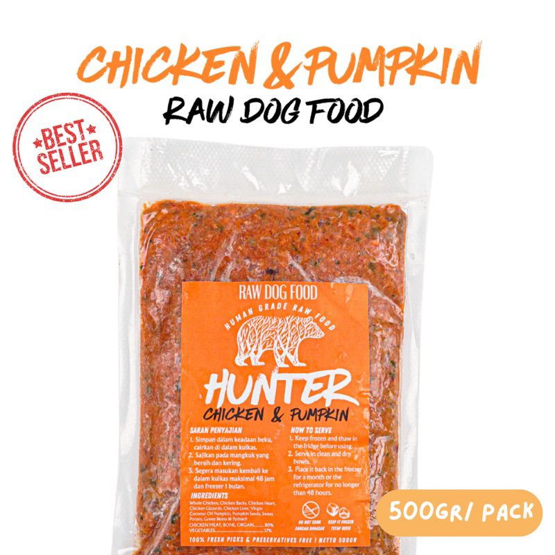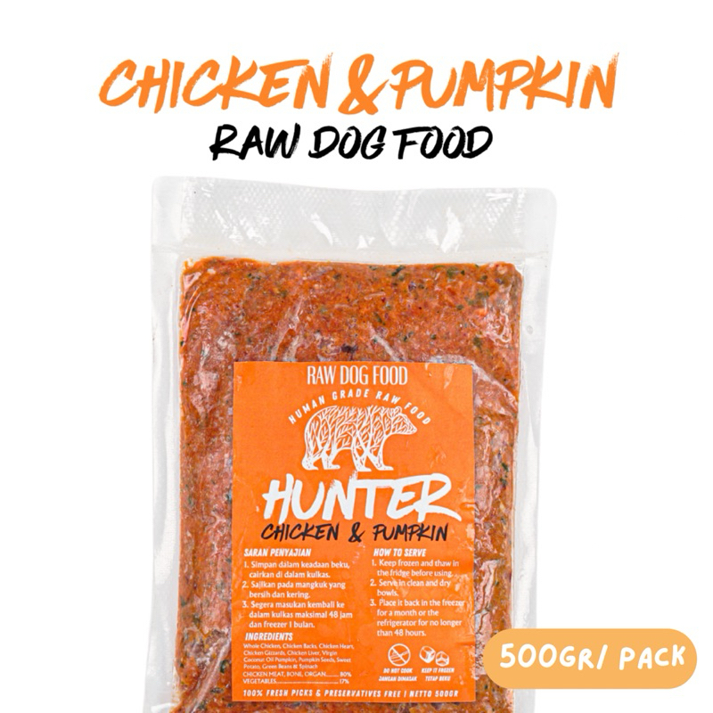 HUNTER RAW FOOD | RAW DOG FOOD | 500 gr | CHICKEN AND PUMPKIN | DUCK AND CARROT | RABBIT AND BROCCOLI