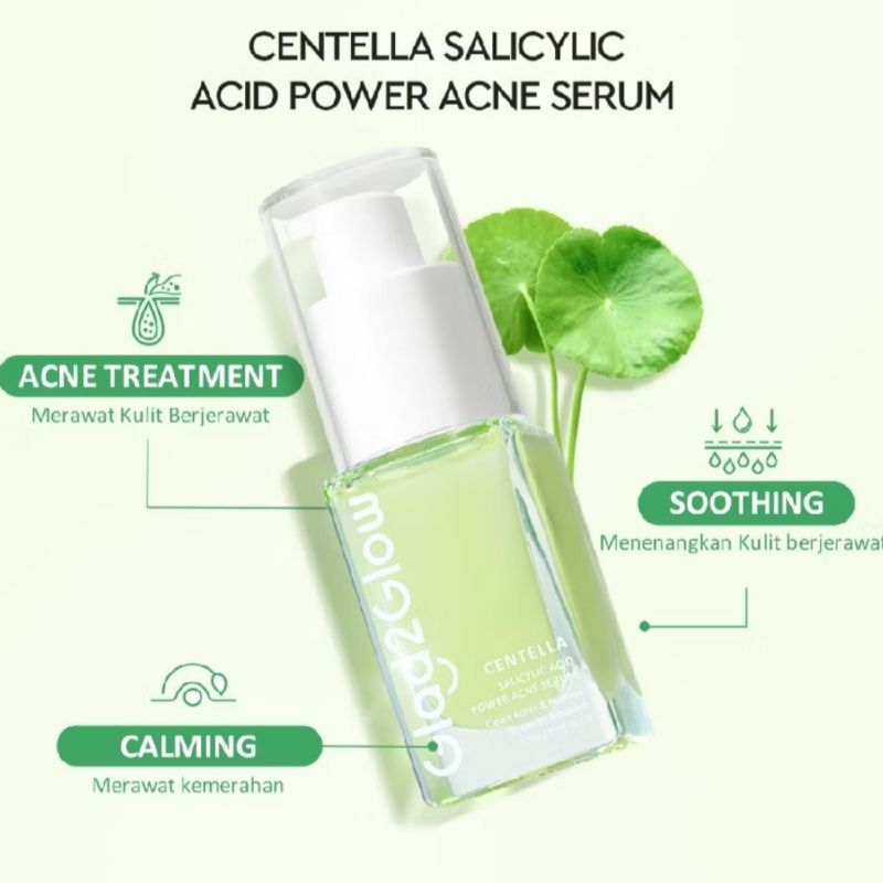 Serum Glad2Glow Centella Salicylic Acid Power Acne Serum 18ml - Serum Jerawat G2G Hijau