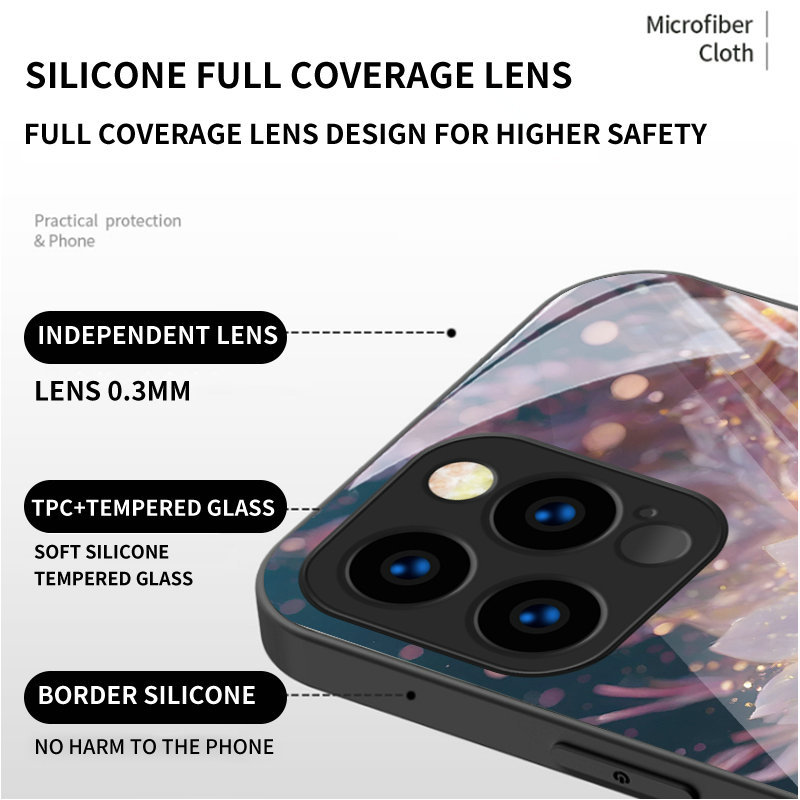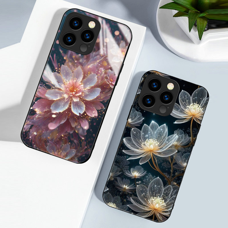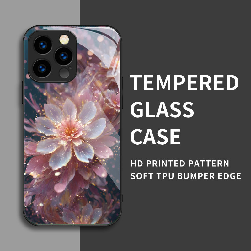 Kaca Casing Motif Bunga Teratai Untuk iPhone 15 14 13 12 11 Pro X XR Xs Max 6 6s 7 8 Plus Soft Silikon Case Penutup Ponsel | YN D053