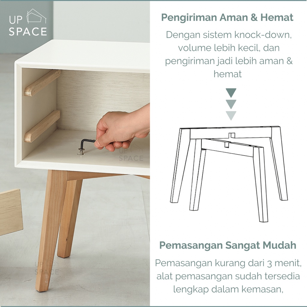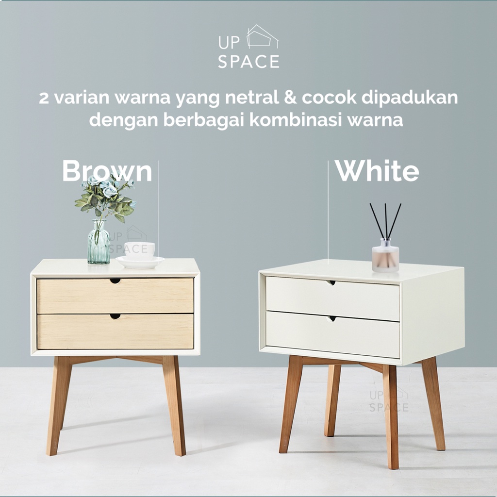 UP SPACE Lenon Side Table (Tipe 2) / Nakas / Meja Samping / Bedside Table / Meja Kayu / Wooden Side Table / End Table / Nakas Scandinavian Minimalis Modern