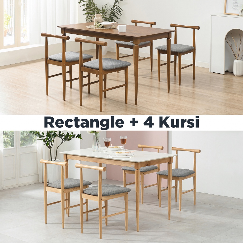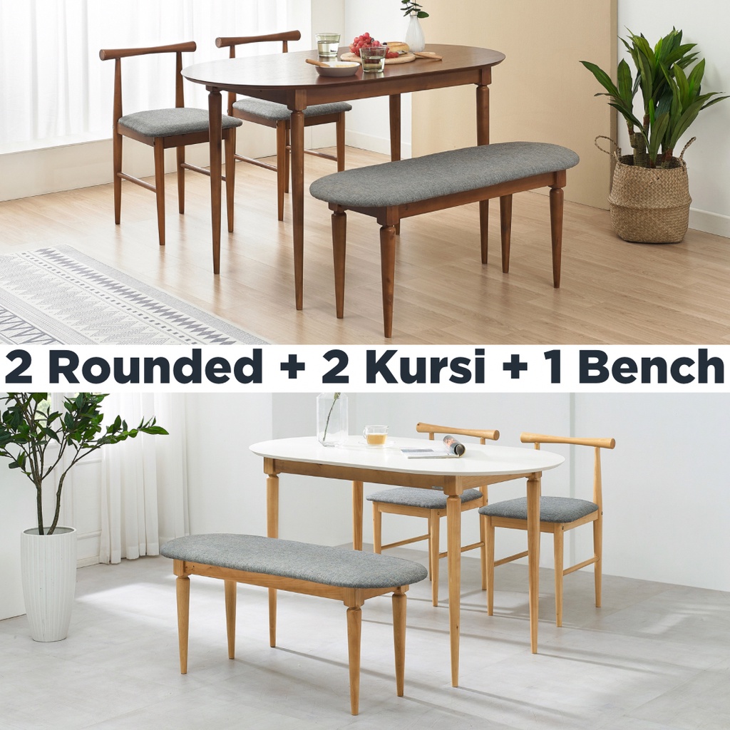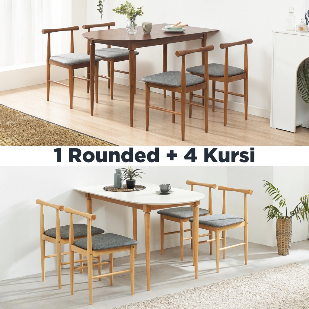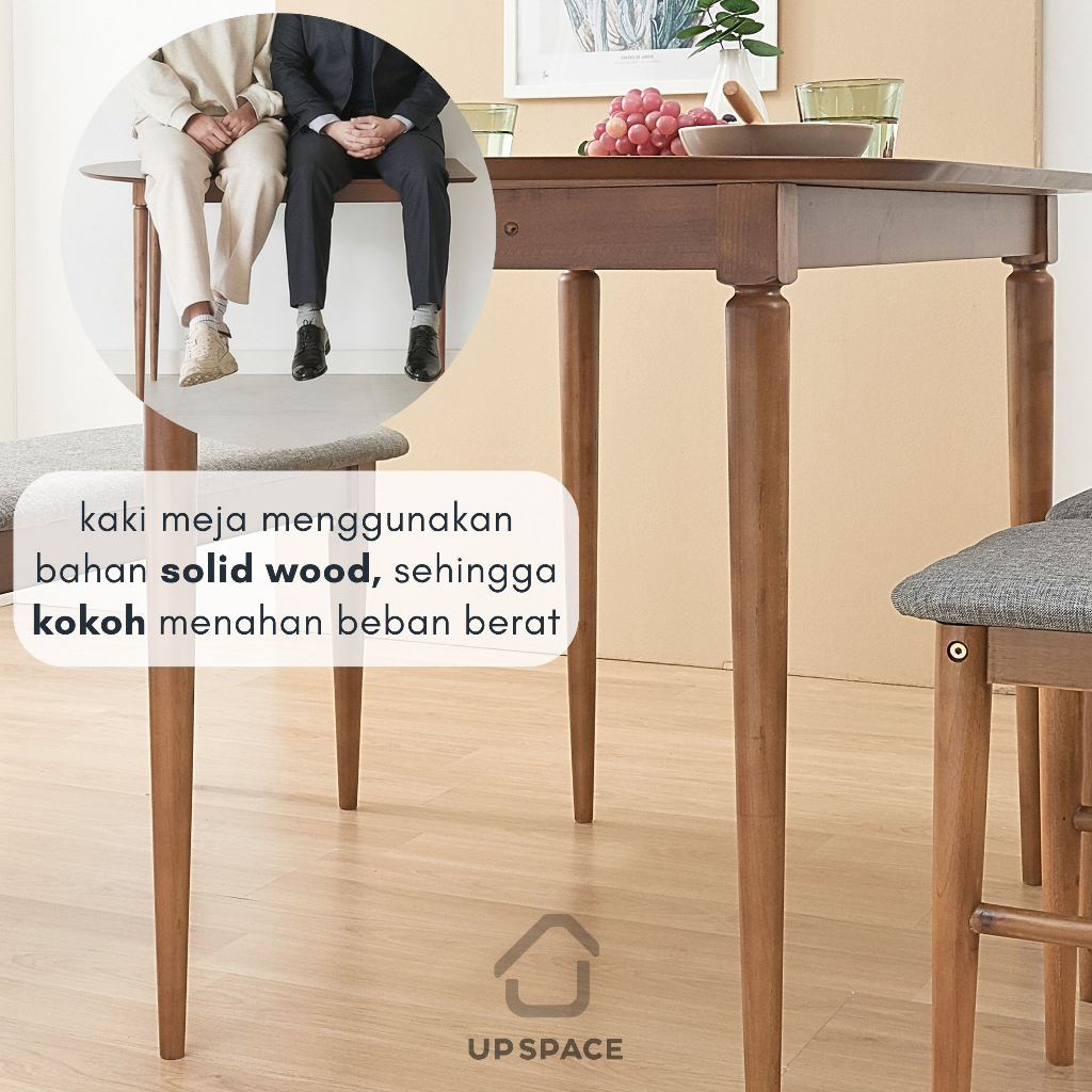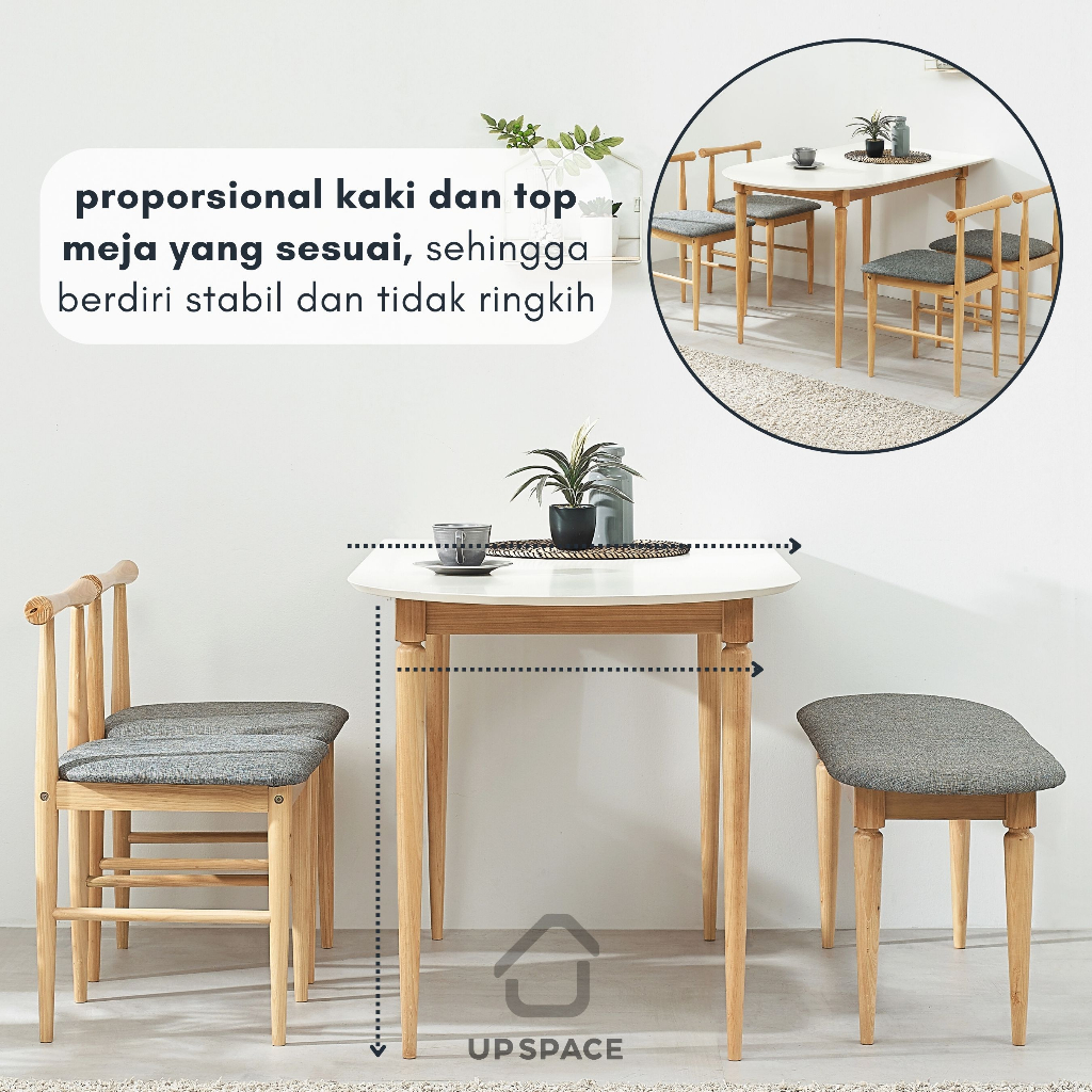 UP SPACE Eden Dining Table Set / Meja Makan Set Kursi Makan / Meja Makan Kayu / Meja Makan Sudut / Meja Makan Dinding / Meja Makan Oval / Wooden Dining Chair / Kursi Makan Kayu / Meja Makan Kecil